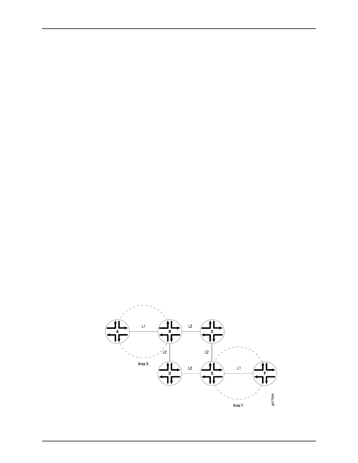 that operates as both a Level 1 and Level 2 router (Router B). See Figure 26 on page 540.