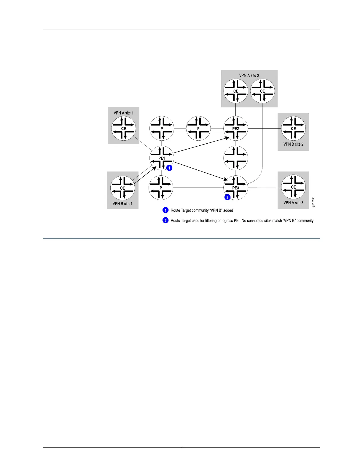 overlap. Here, sites within VPN A and VPN B use the address spaces 10.1.0.0/16,