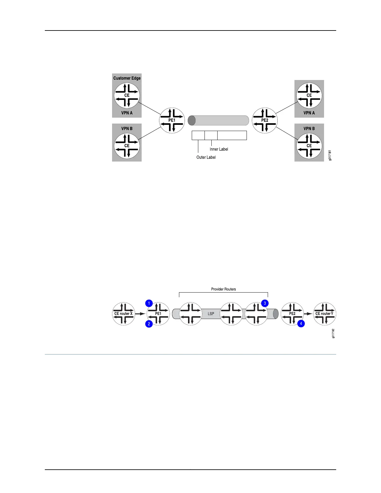 for each VPN. You configure the routing instances on PE routers only. Each VPN routing