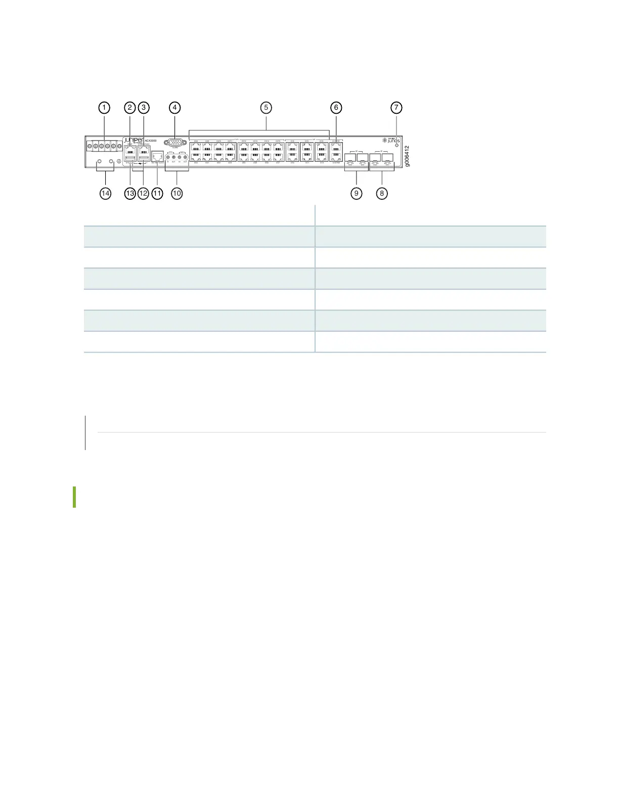 The front panel of an ACX2100 router consists of the following components (see Figure 10 on page 49