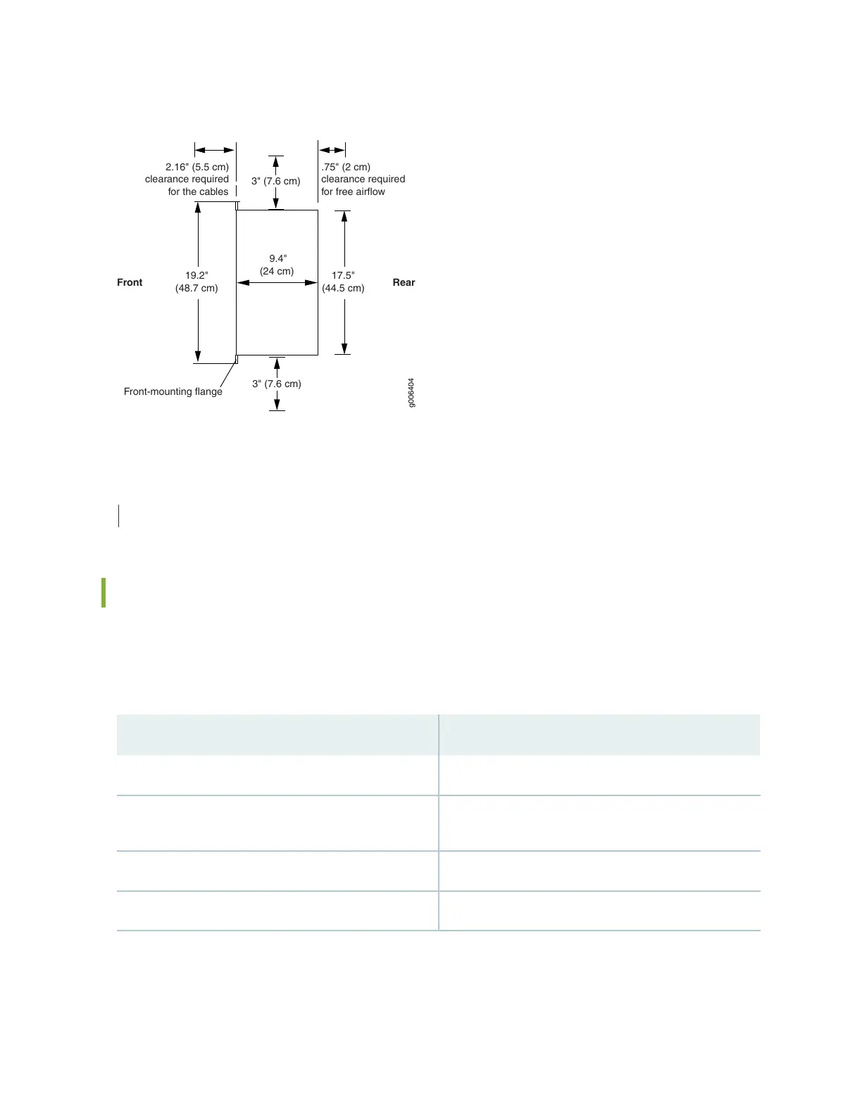 Figure 15: ACX2000 and ACX2100 Chassis Dimensions and Clearance Requirements