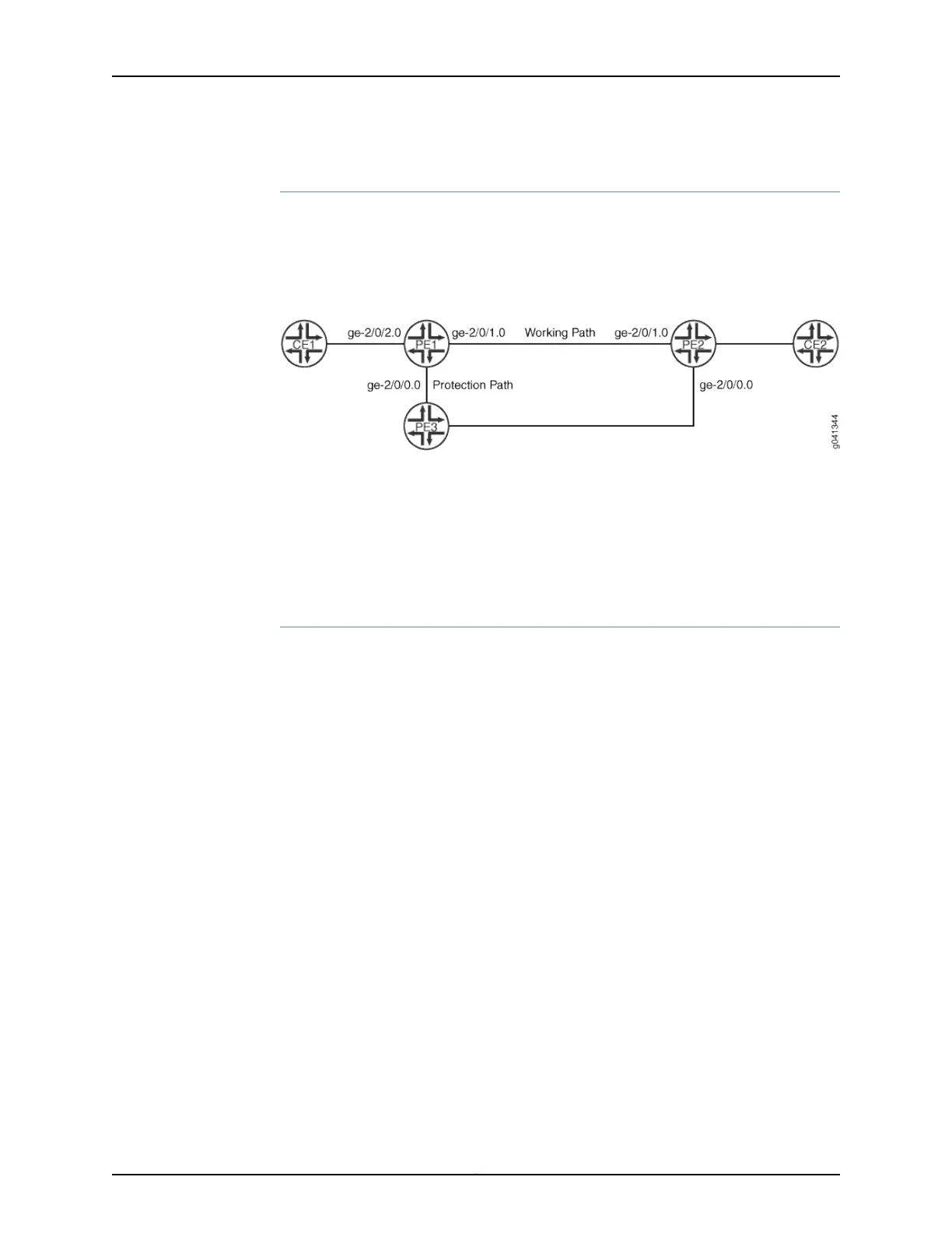 One is the working path between Router PE1 and Router PE2. The other is the protection