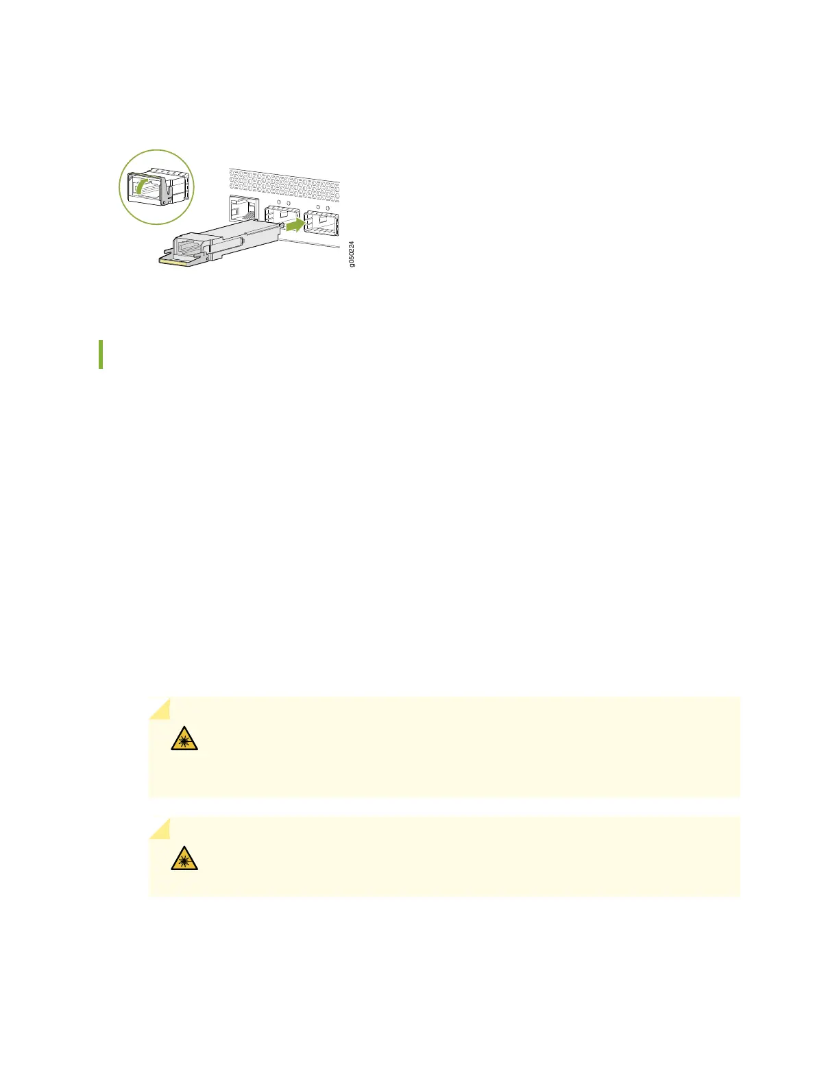 WARNING: Do not look directly into a fiber-optic transceiver or into the ends of