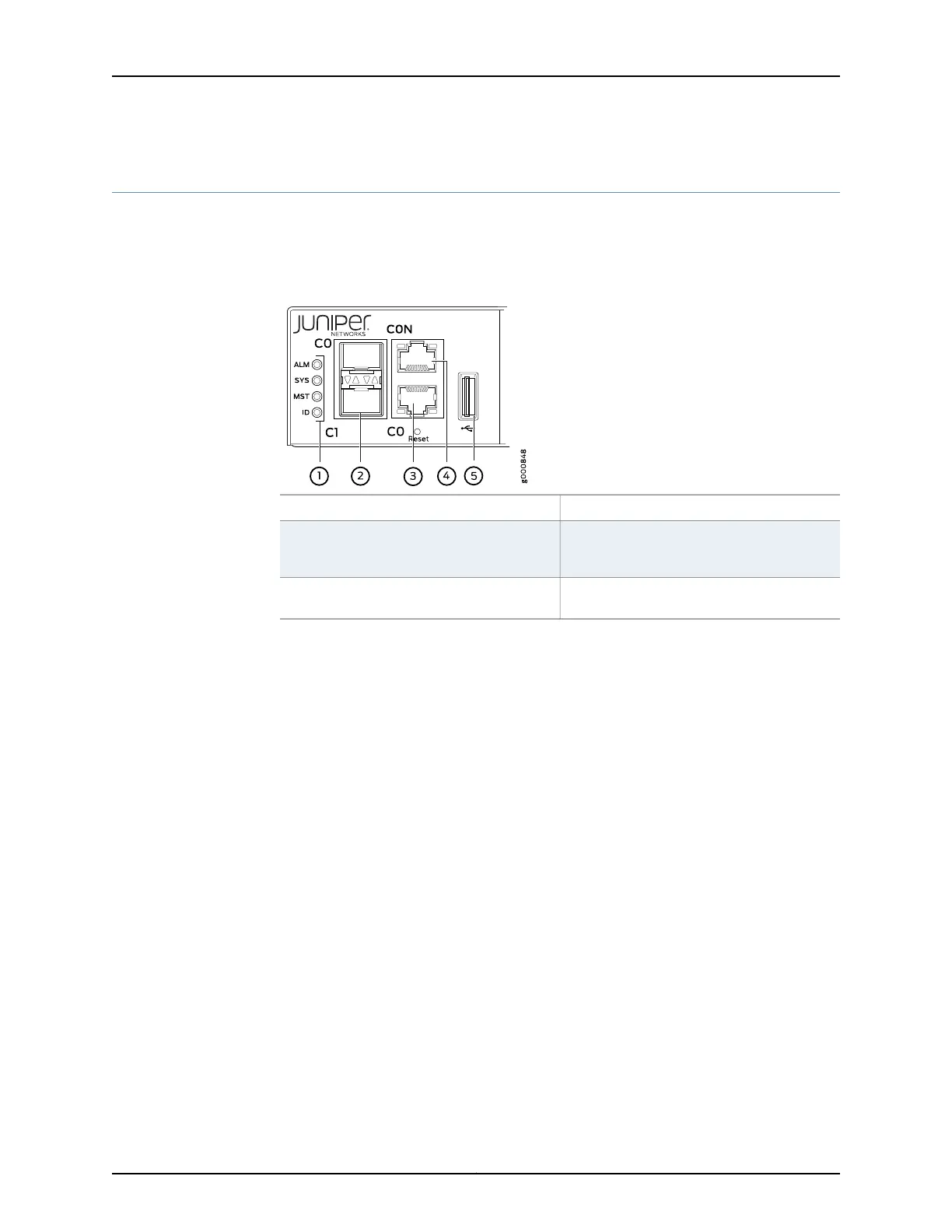 Table 8 on page 24 describes the chassis status LEDs on an ACX5000 router, their colors
