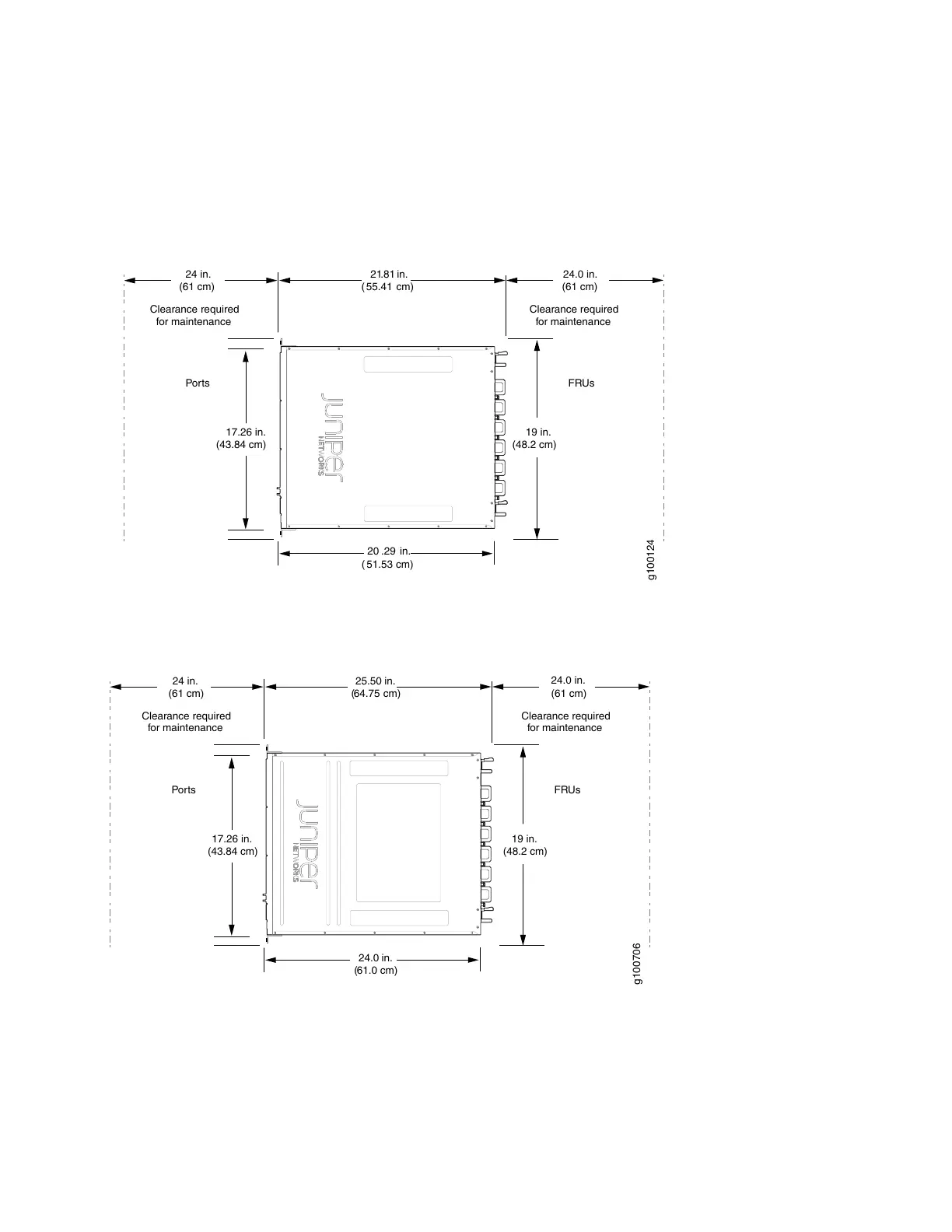 Figure 12: Clearance Requirements for Airflow and Hardware Maintenance for ACX5448 and ACX5448-D Routers
