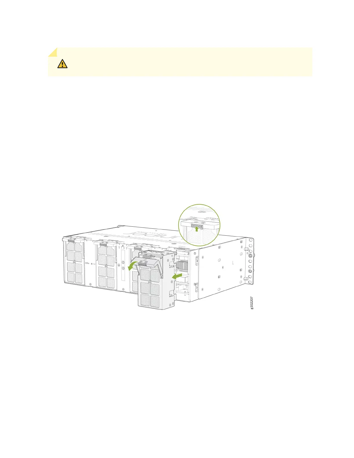 and pull the fan tray completely out of the chassis. See Figure 50 on page 100.