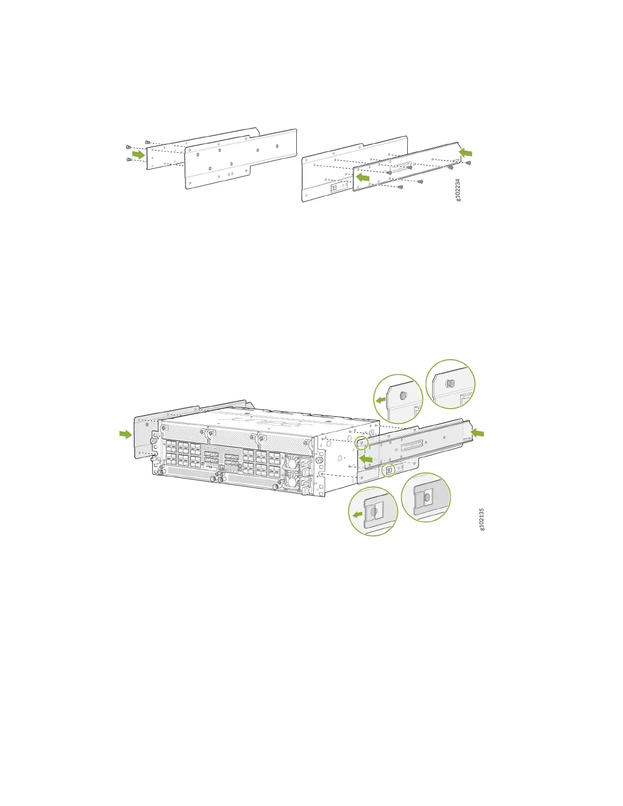 a. Align the keyholes in the bracket assembly to the aligned holes on the chassis.