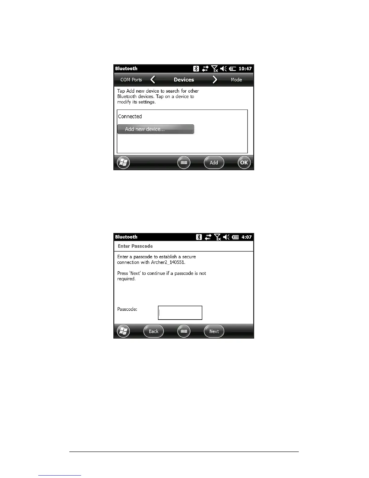 Bluetooth control panel, Devices screen is shown: