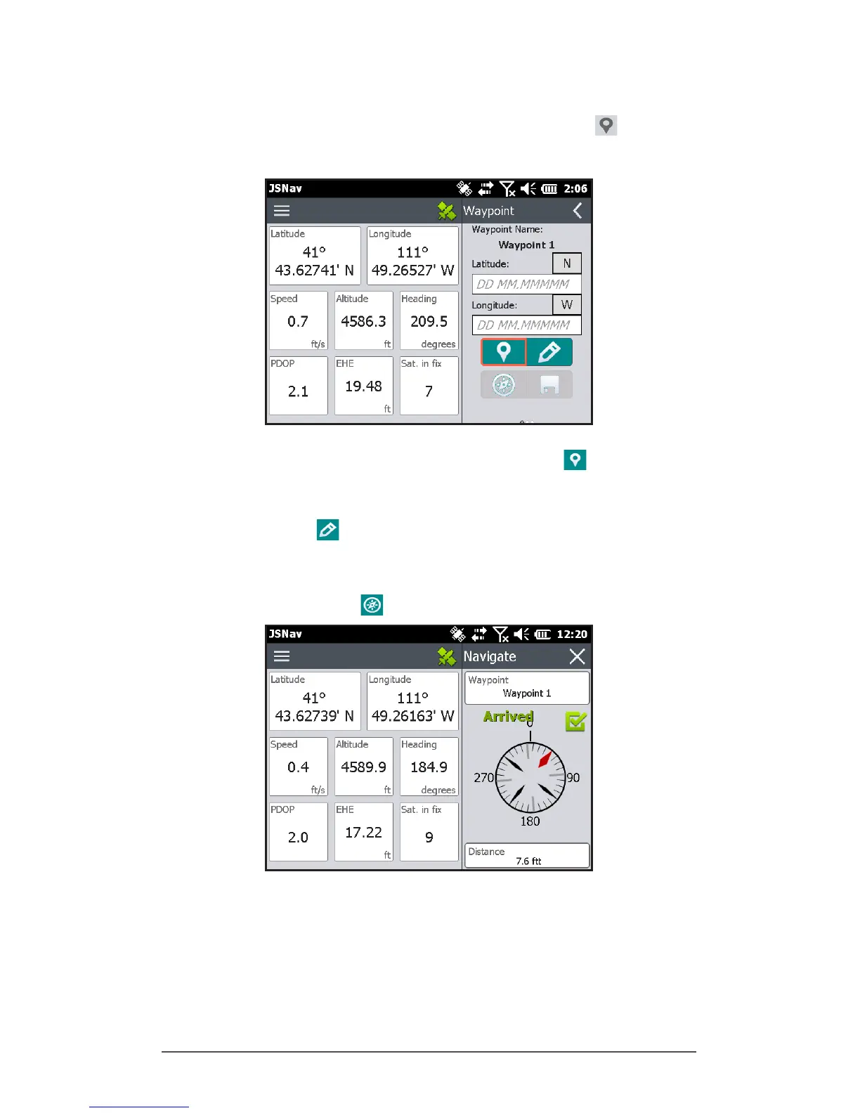 From the main JSNav screen, select the waypoint icon to
