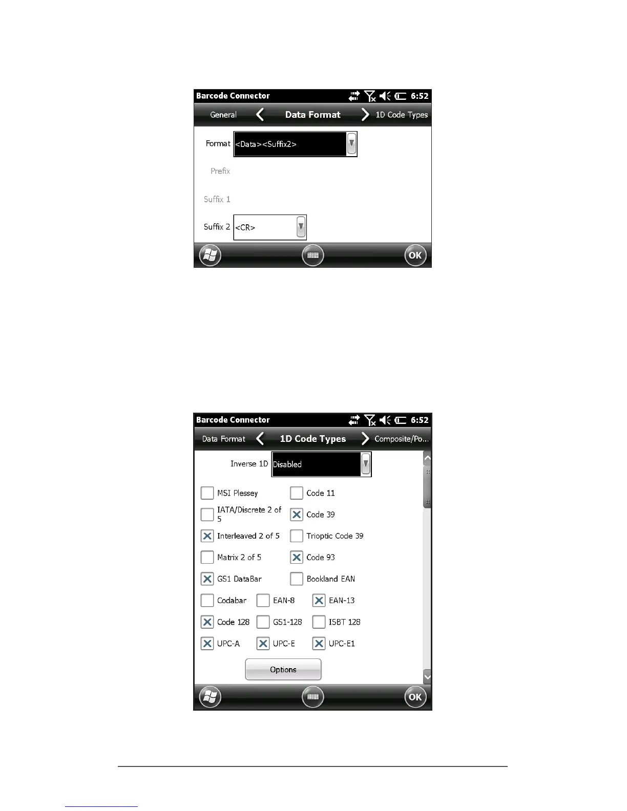 1D Code Types Screen