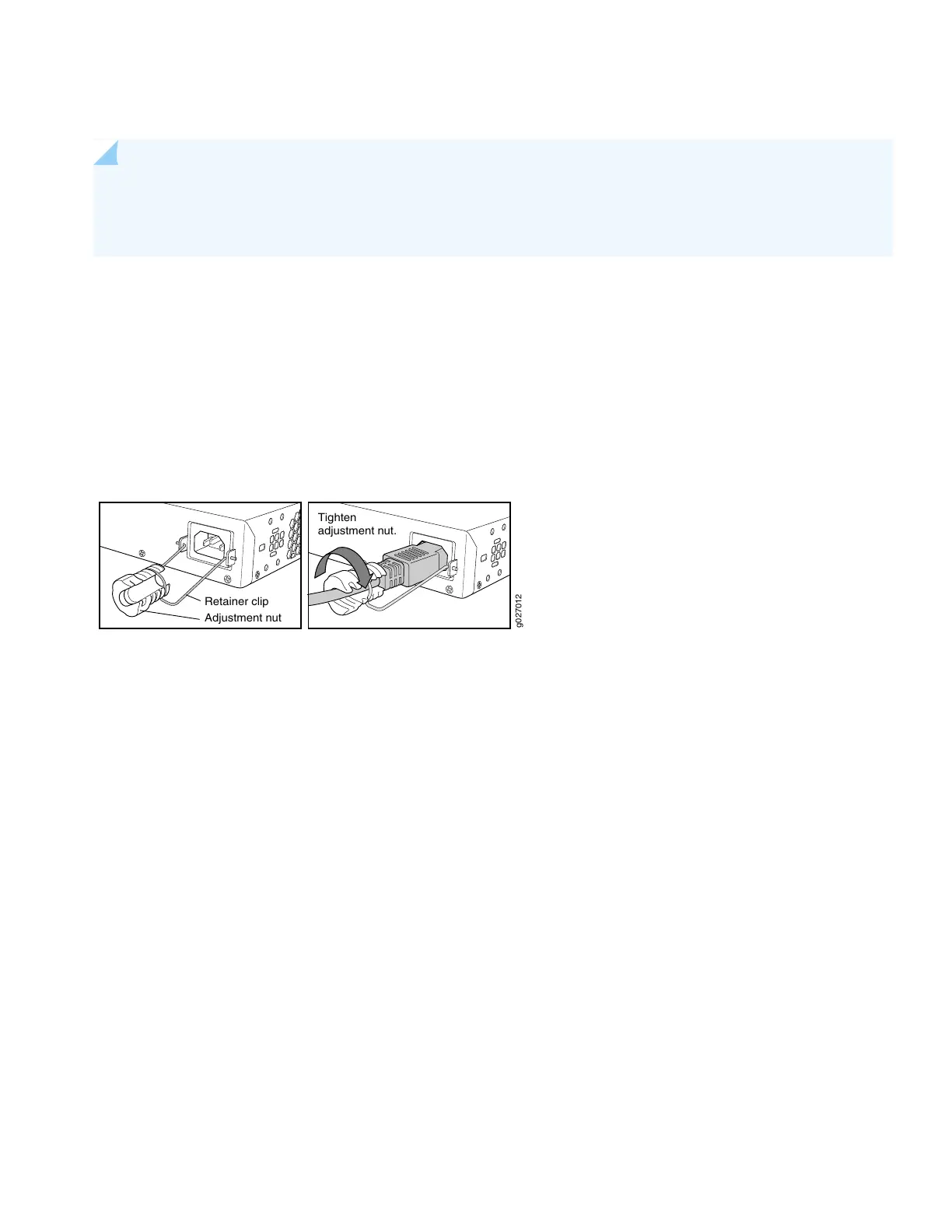 3. Push the cord into the slot in the adjustment nut of the power cord retainer. Turn the nut until it is snug against the