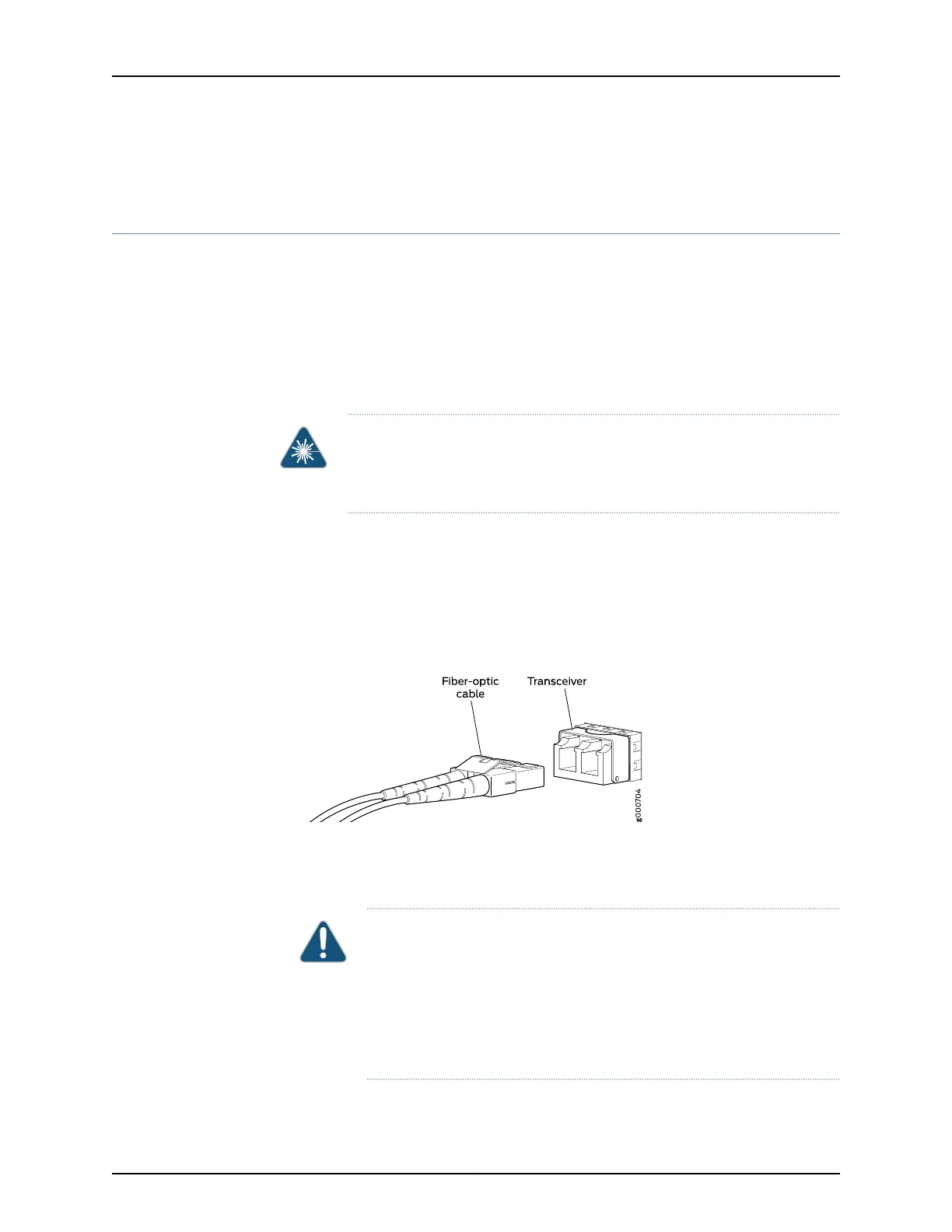 WARNING: Do not look directly into a fiber-optic transceiver or into the ends
