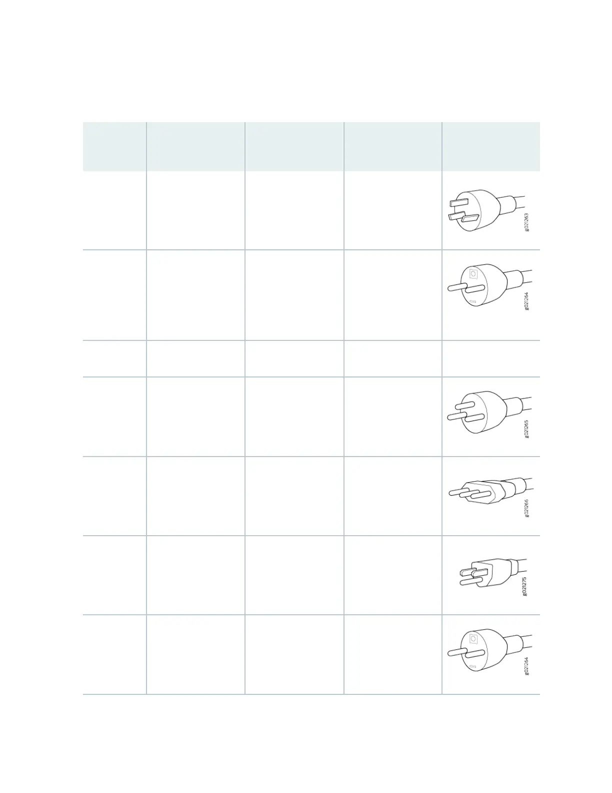 Table 43: AC Power Cord Specicaons for 350 W Power Supplies for EX4300 Switches Except