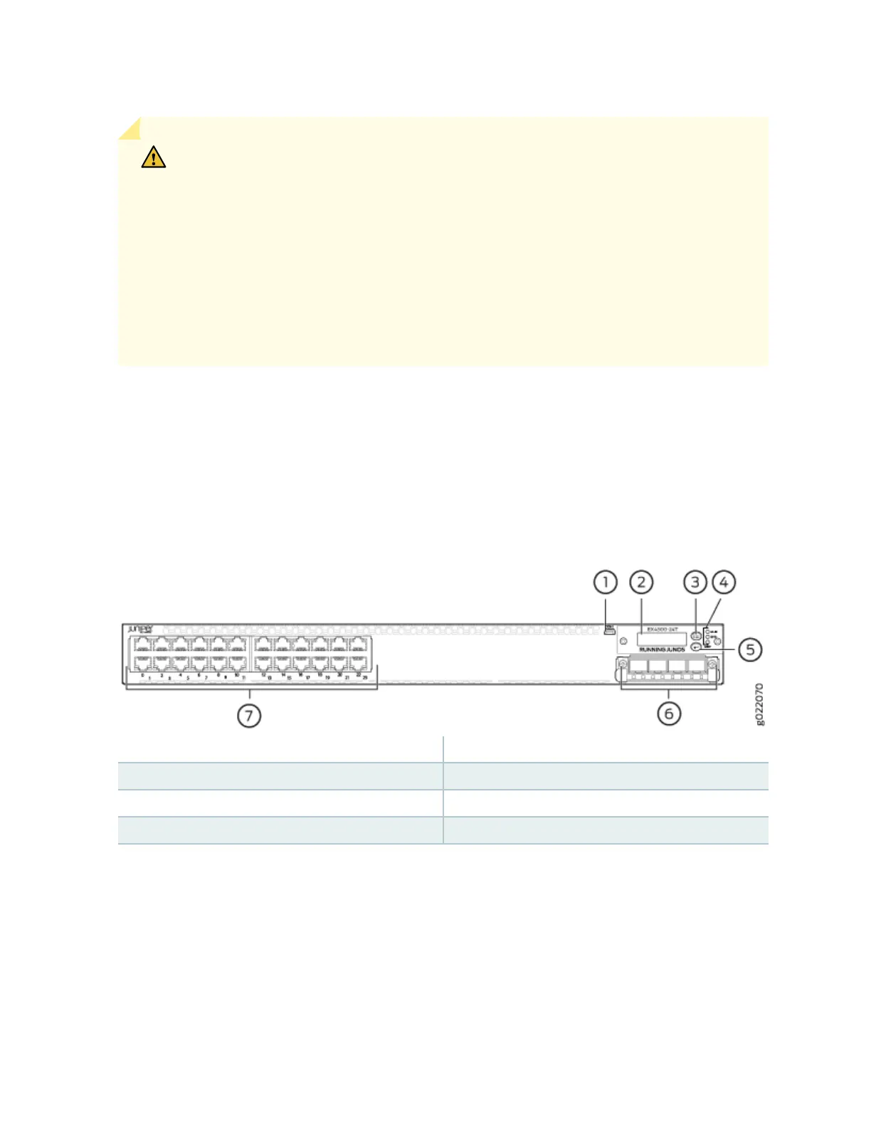 Figure 9 on page 25 shows the components on the front panel of a 24-port EX4300 switch (with an