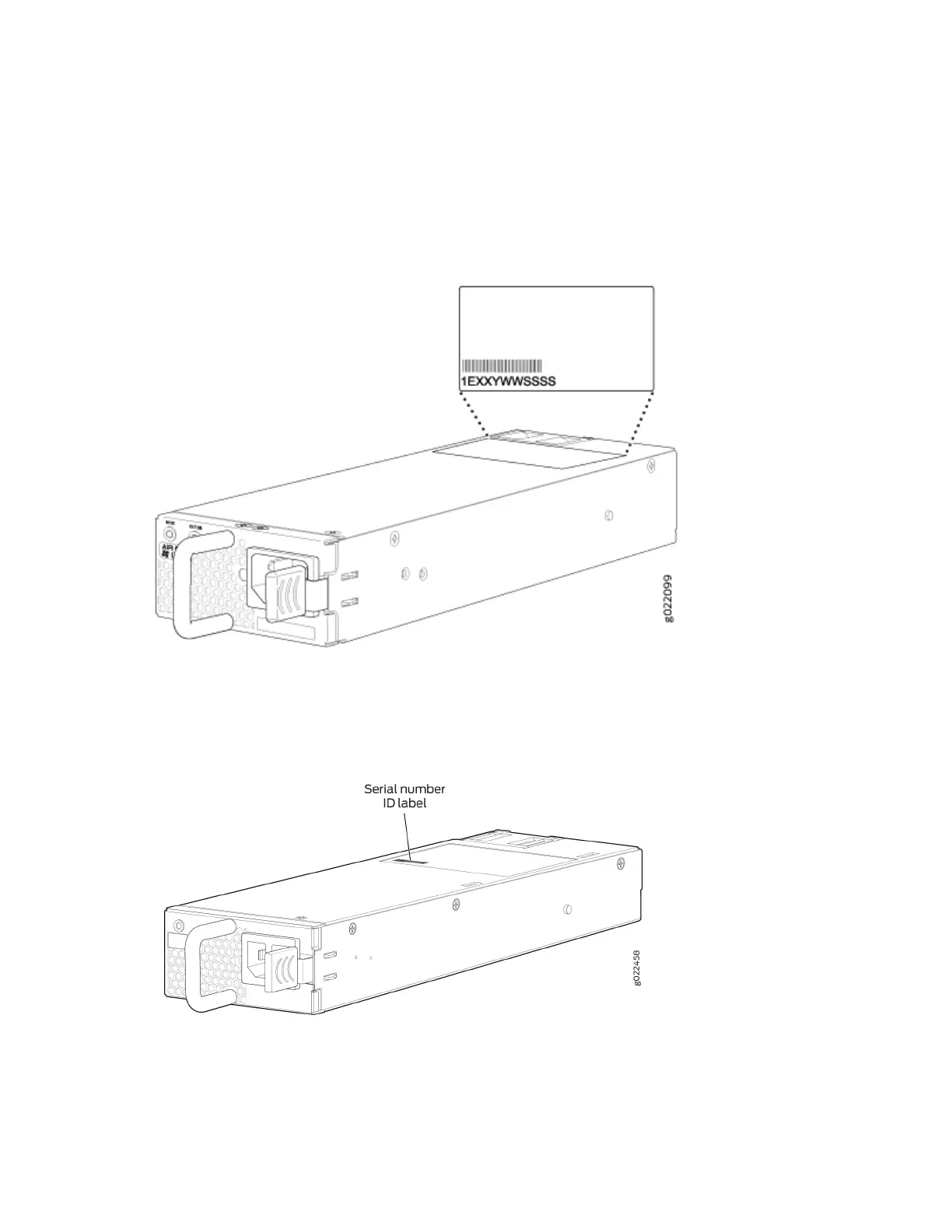 Figure 105: Locaon of the Serial Number ID Label on an AC Power Supply Used in EX4300-48MP