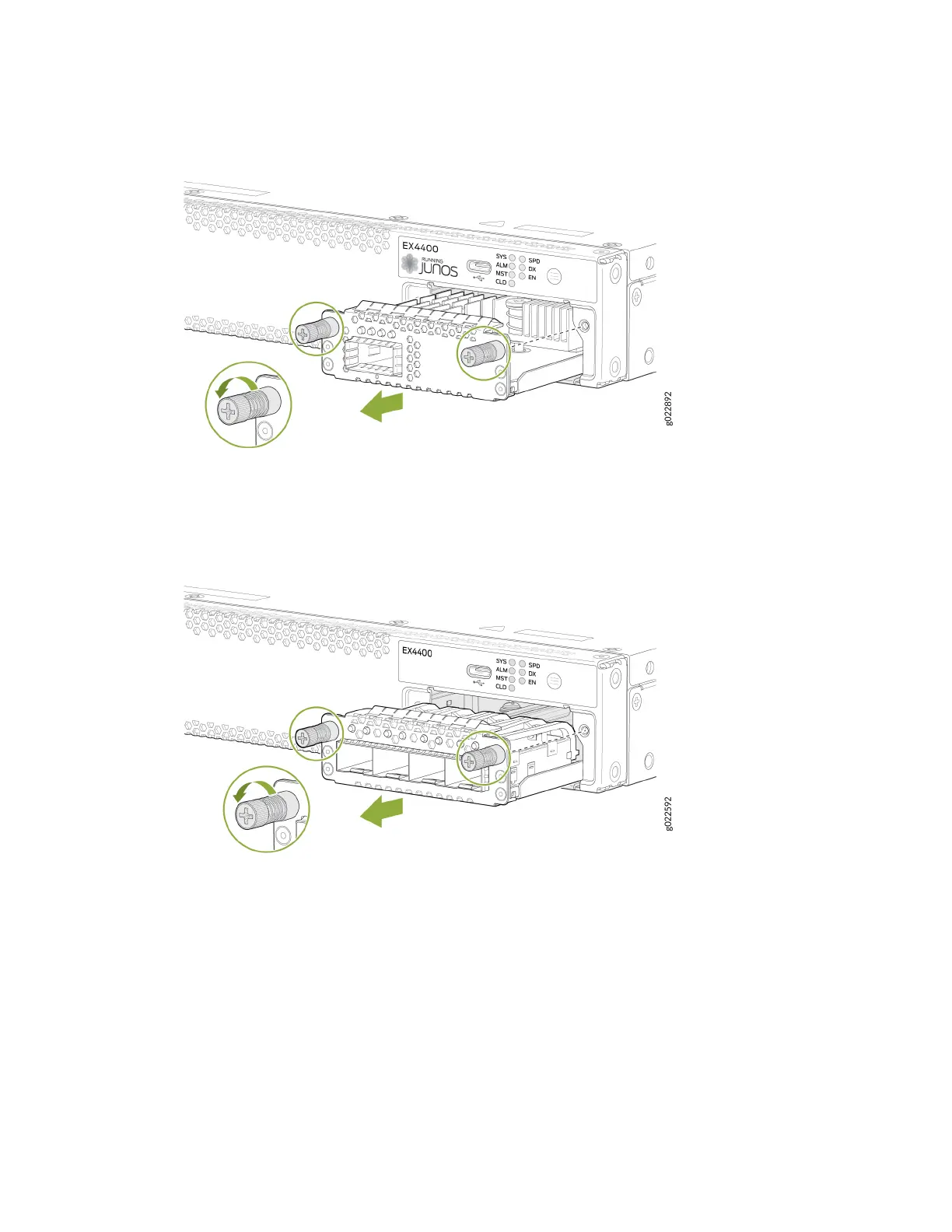 Figure 118: Remove a 4x10GbE SFP+ Extension Module from the EX4400 Switch