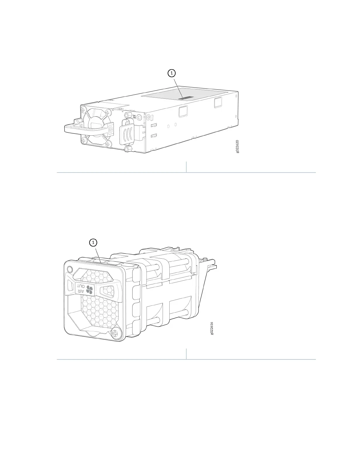 —The serial number ID label is on the top of the fan module (see Figure 141 on page