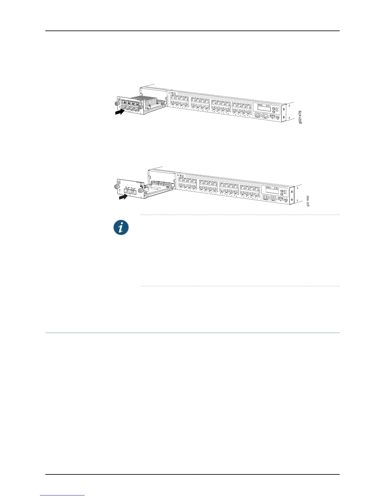 Figure 63 on page 211 shows how to install a QSFP+ expansion module on the front panel