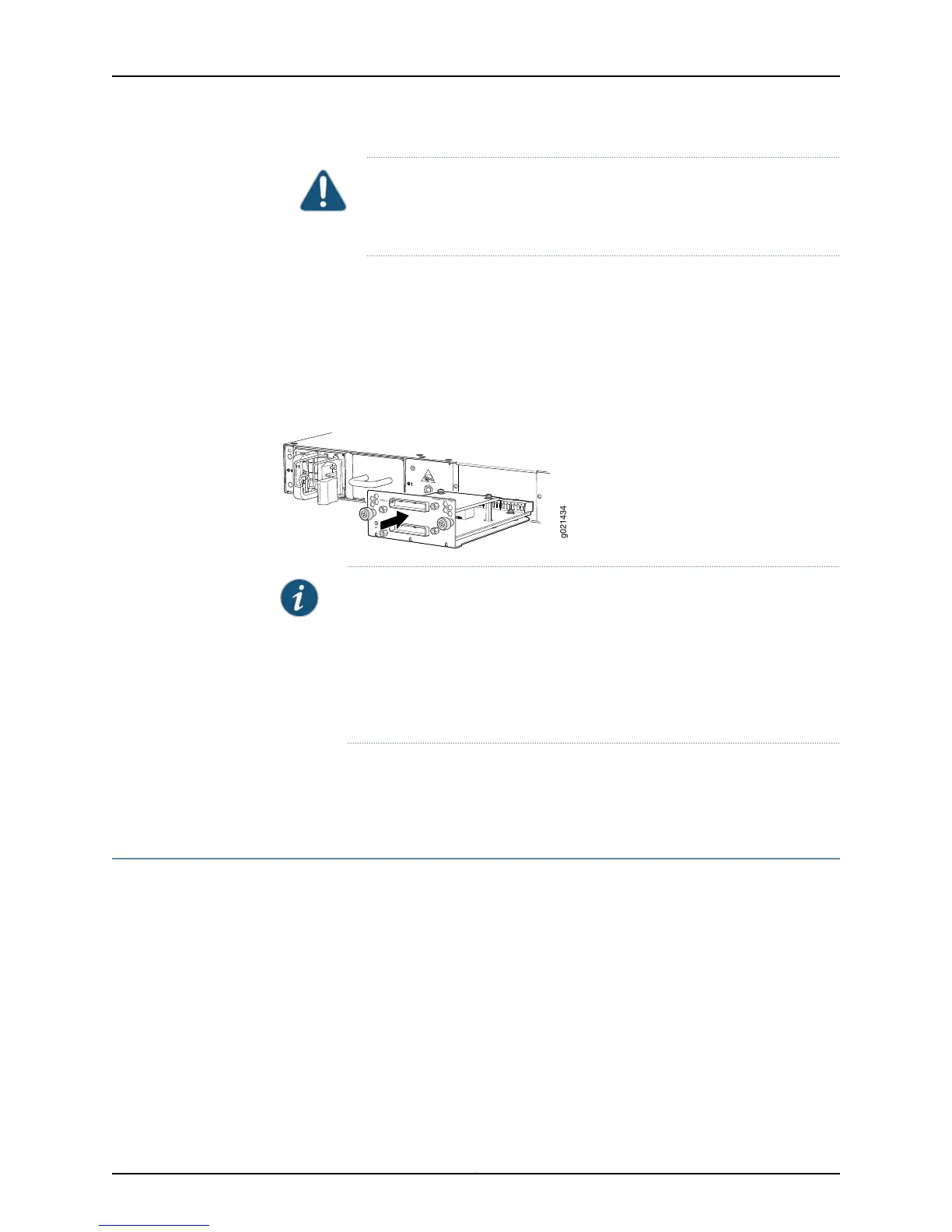 CAUTION: Before you slide the Virtual Chassis module into the slot on the