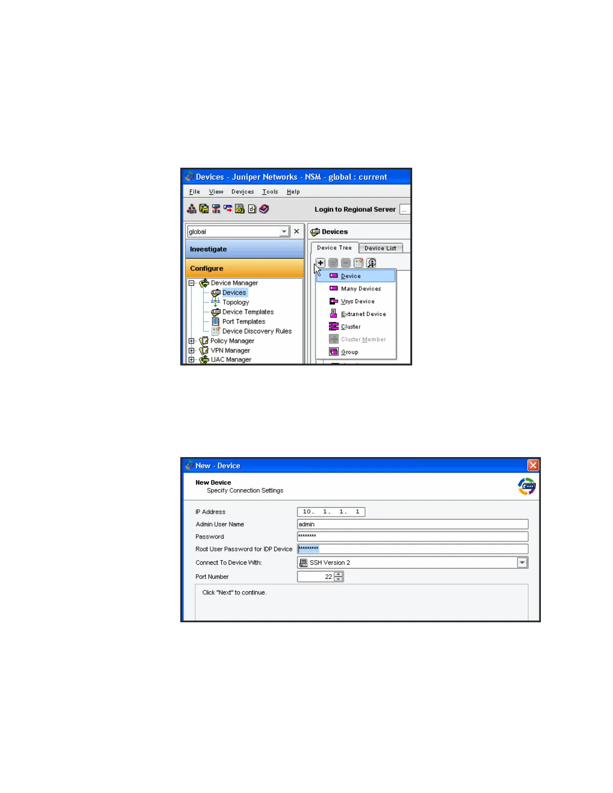 Figure 13: NSM Add Device Wizard: Connection Settings