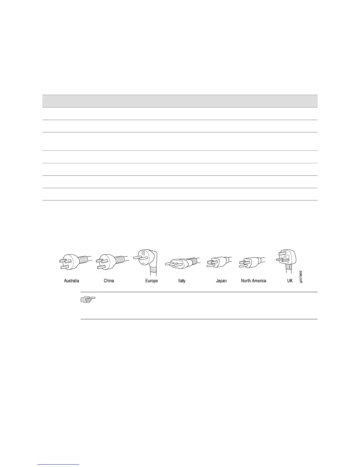 Figure 51 on page 108 illustrates the plug on the power cord for each country or region