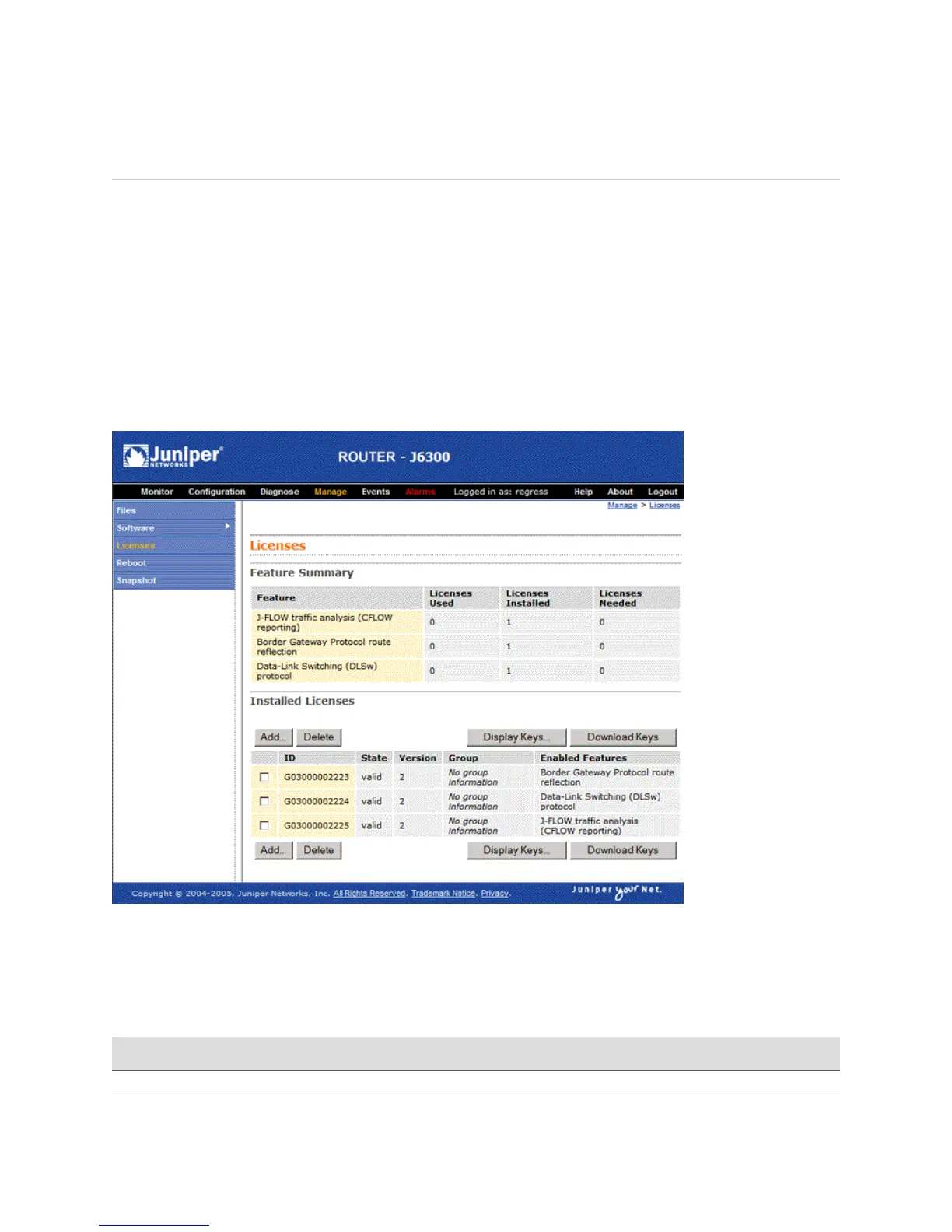■ Displaying License Keys with the J-Web Interface on page 165