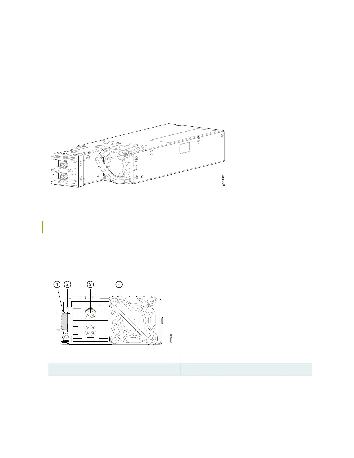 Each DC power supply weighs approximately 4.4 lb (1.99 kg) and consists of a handle, an ejector lever, a