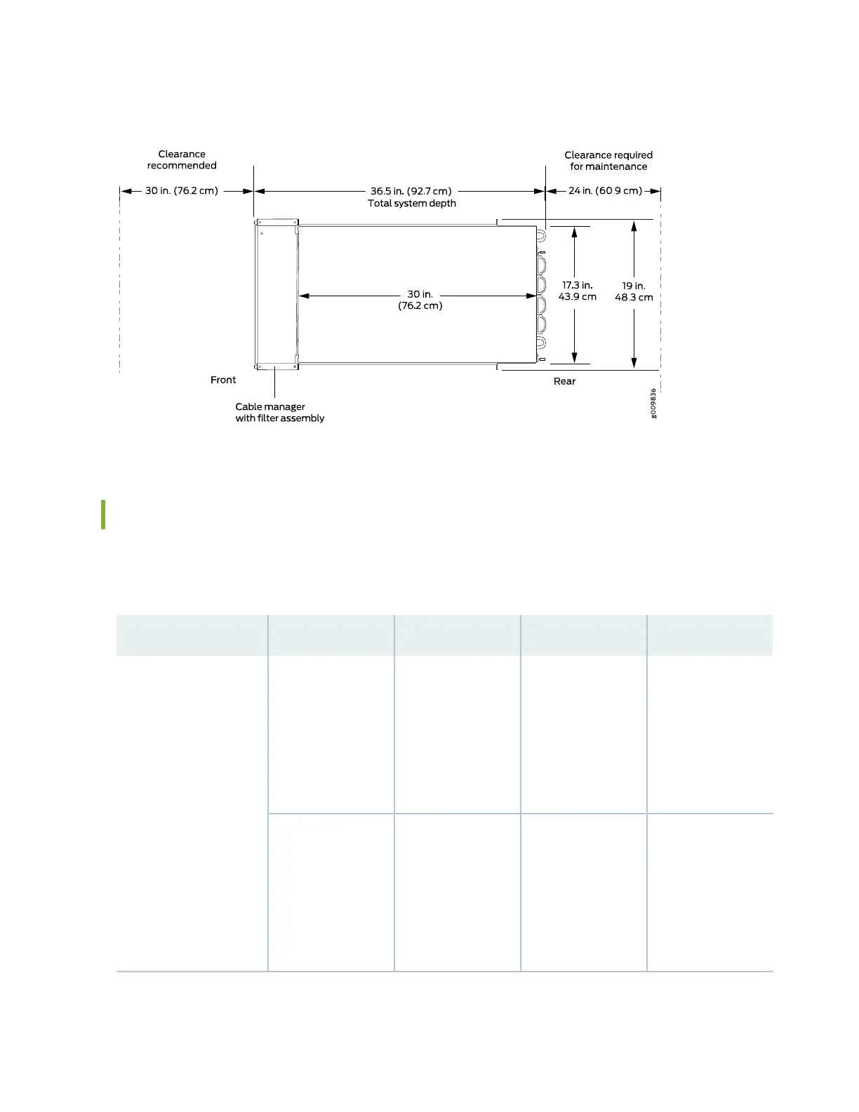 Figure 19: MX10003 Chassis Dimensions and Clearance Requirements