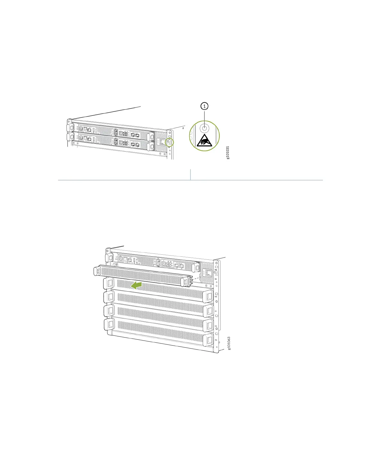 strap to the ESD point on the front of the MX10004 (see Figure 84 on page 188).