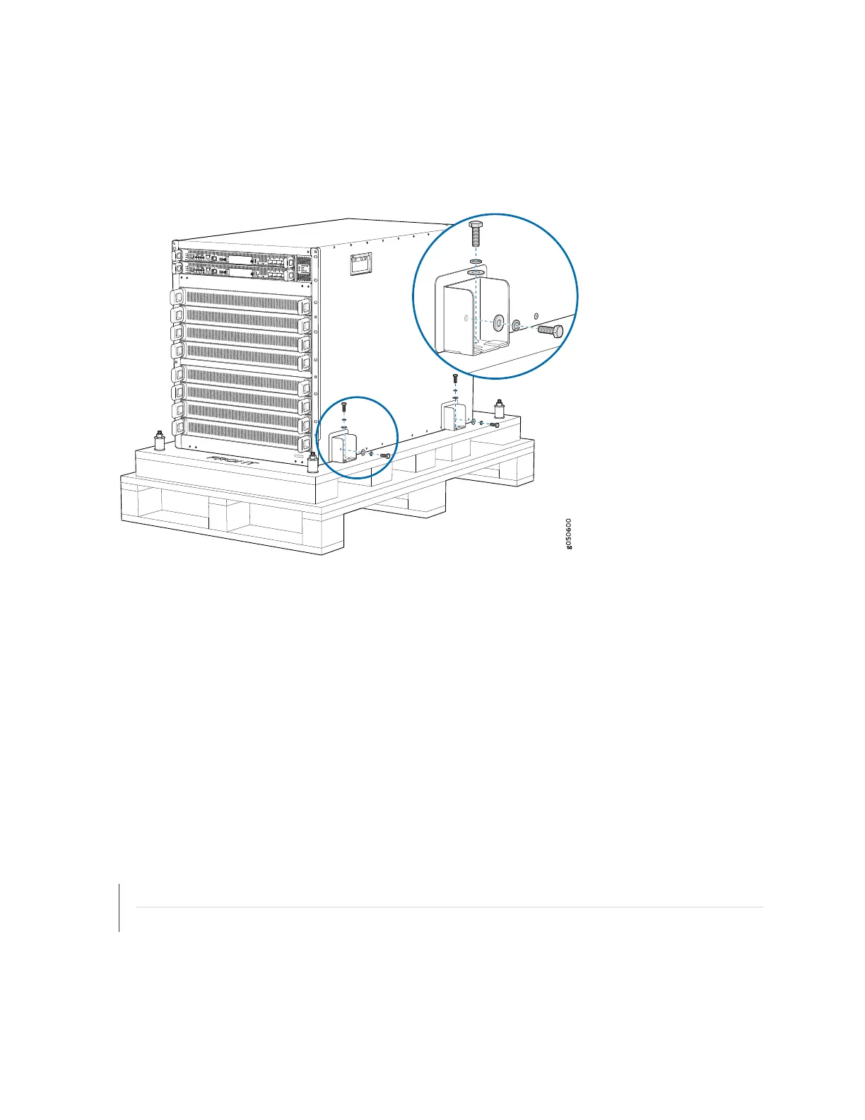 that secure the chassis to the shipping pallet (see Figure 49 on page 134).