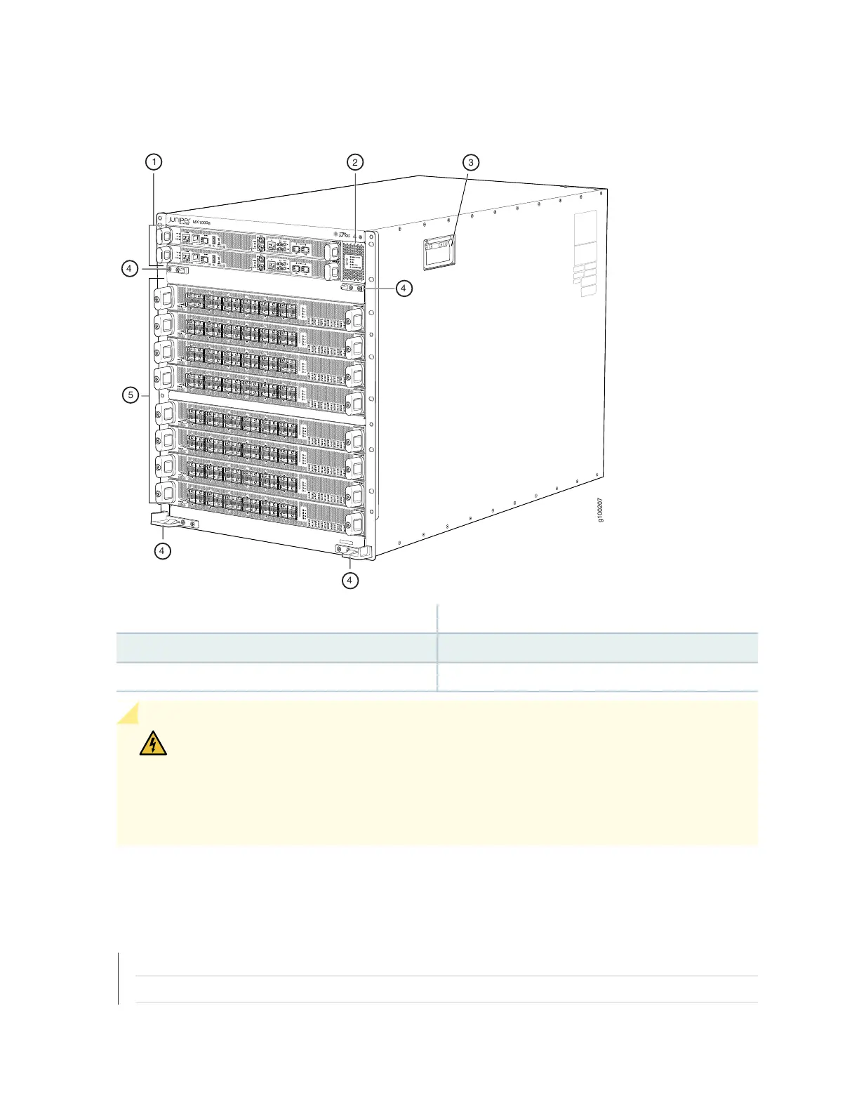when the chassis is empty. See “Mounting an MX10008 in a 4-Post Rack Using a