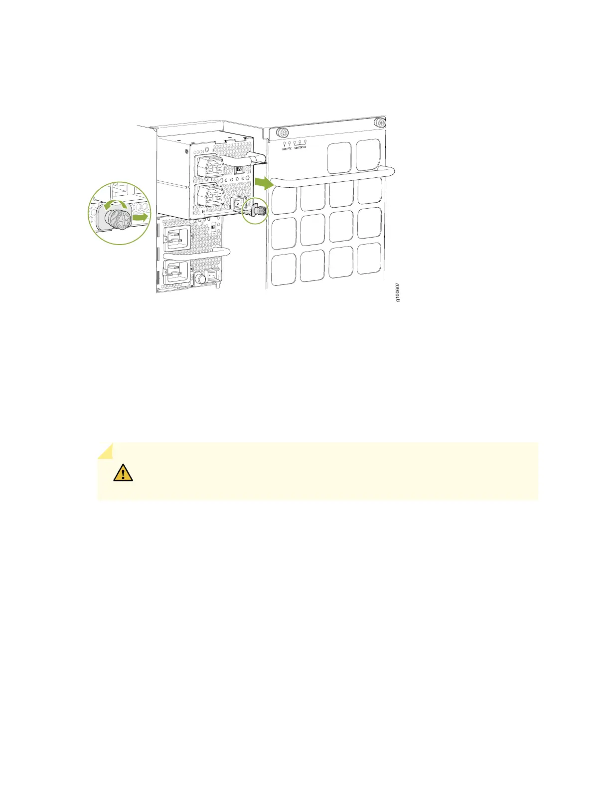 6. Rotate the captive screw away from the faceplate of the power supply to release the latch.