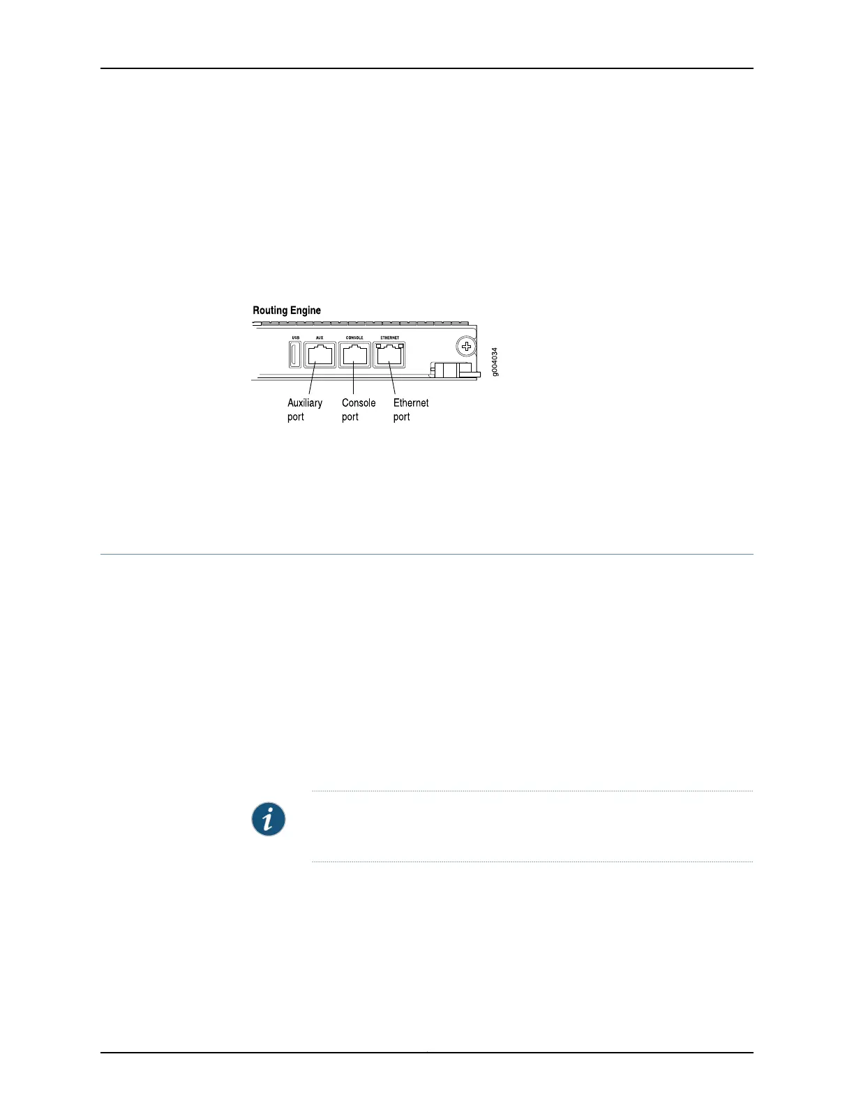 Figure 124 on page 287 shows the external device ports on the Routing Engine.