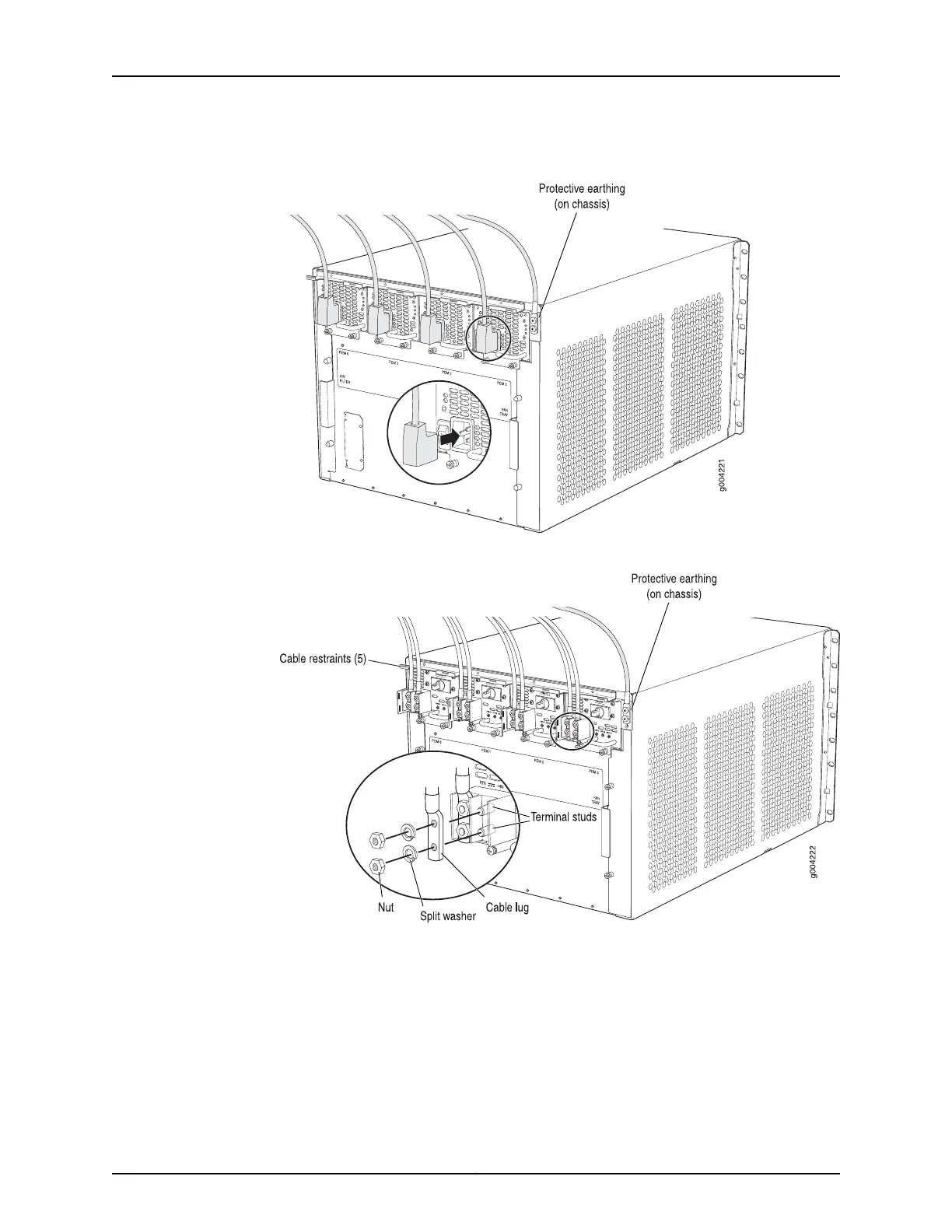 grounding cable (see Figure 45 on page 129) and two UNC 1/4–20 screws used to secure