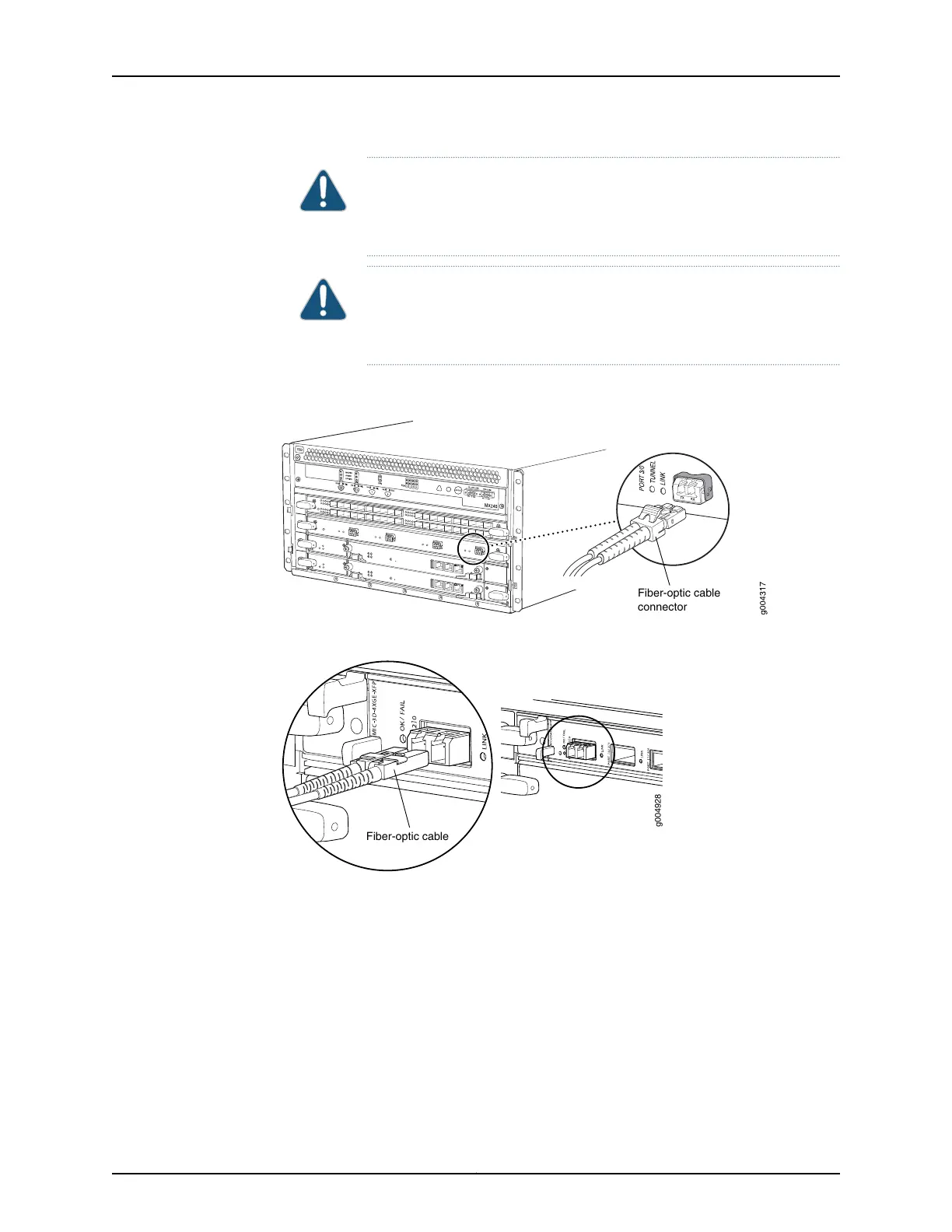 CAUTION: Do not let fiber-optic cable hang free from the connector. Do