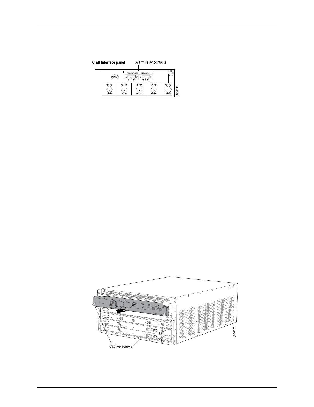 • Connecting the Alarm Relay Wires to the MX480 Craft Interface on page 239