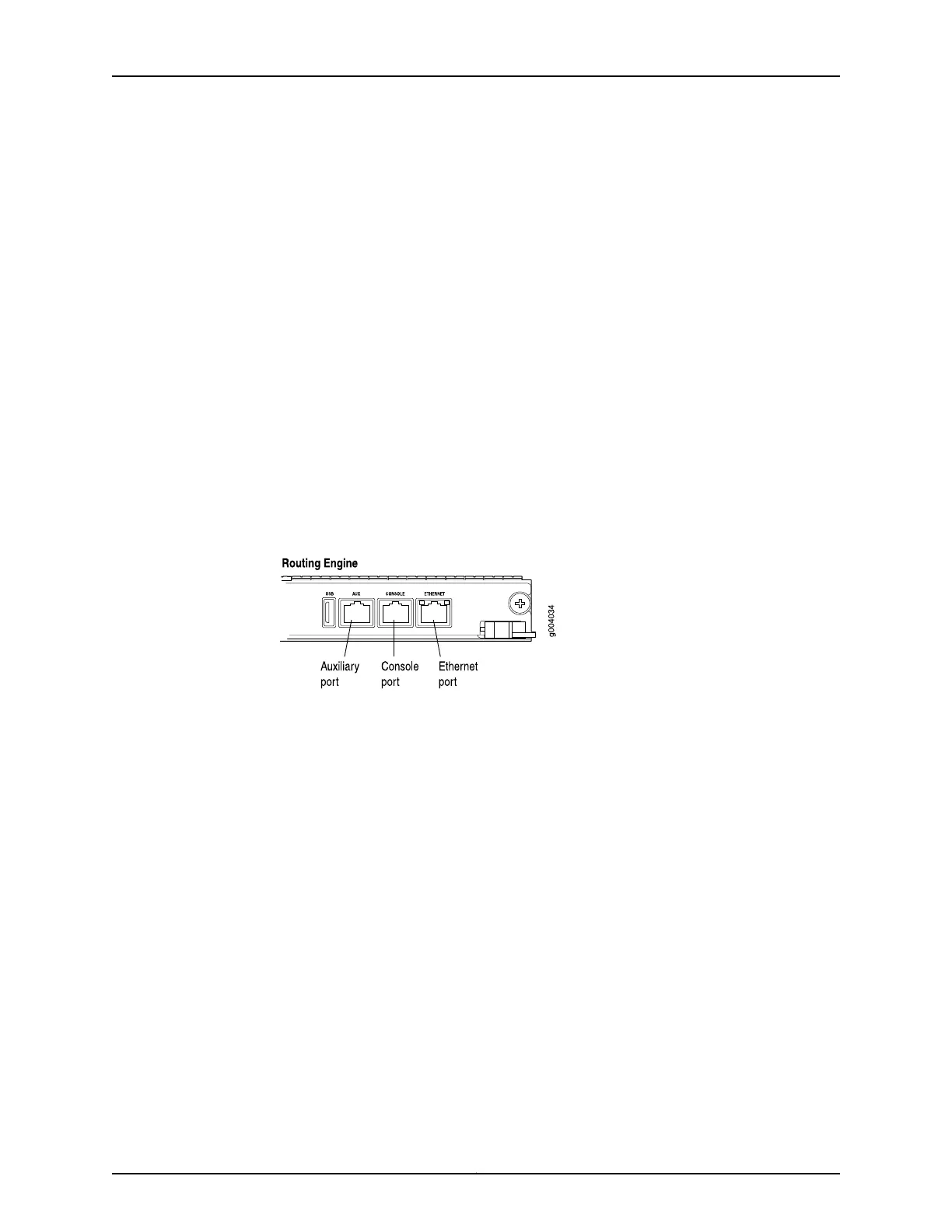 connect it to the AUX port on the Routing Engine. Both ports accept a cable with an RJ-45