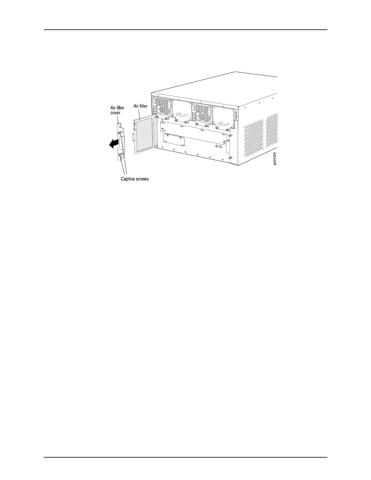 4. Align the captive screws of the air filter cover with the mounting holes on the chassis.