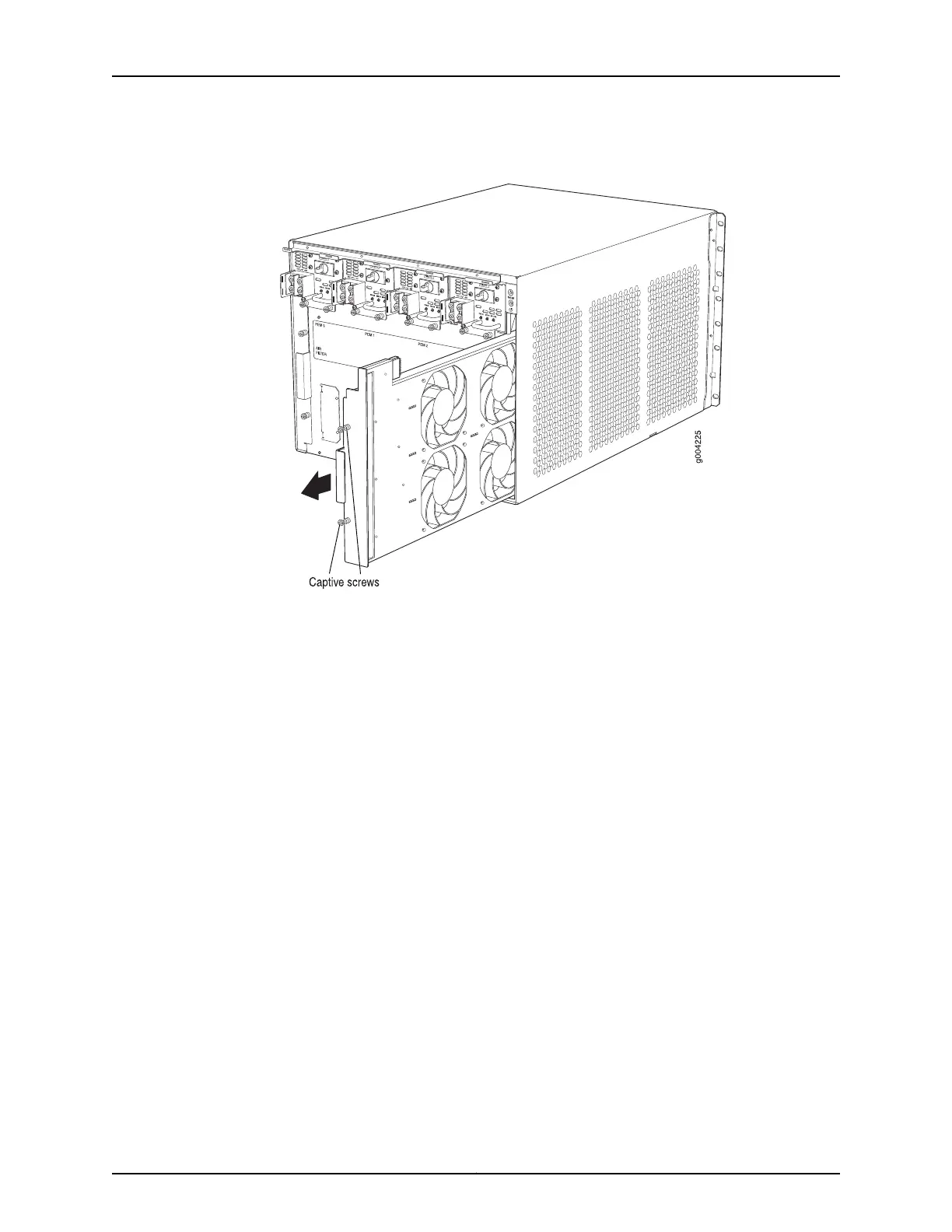 3. Tighten the captive screws on the fan tray faceplate to secure it in the chassis.
