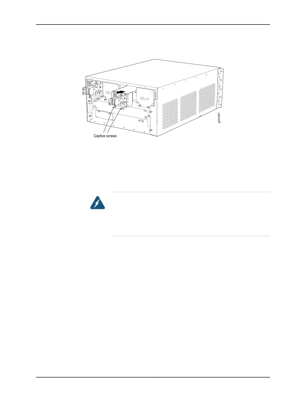 5. Tighten the captive screws on the lower edge of the power supply faceplate.