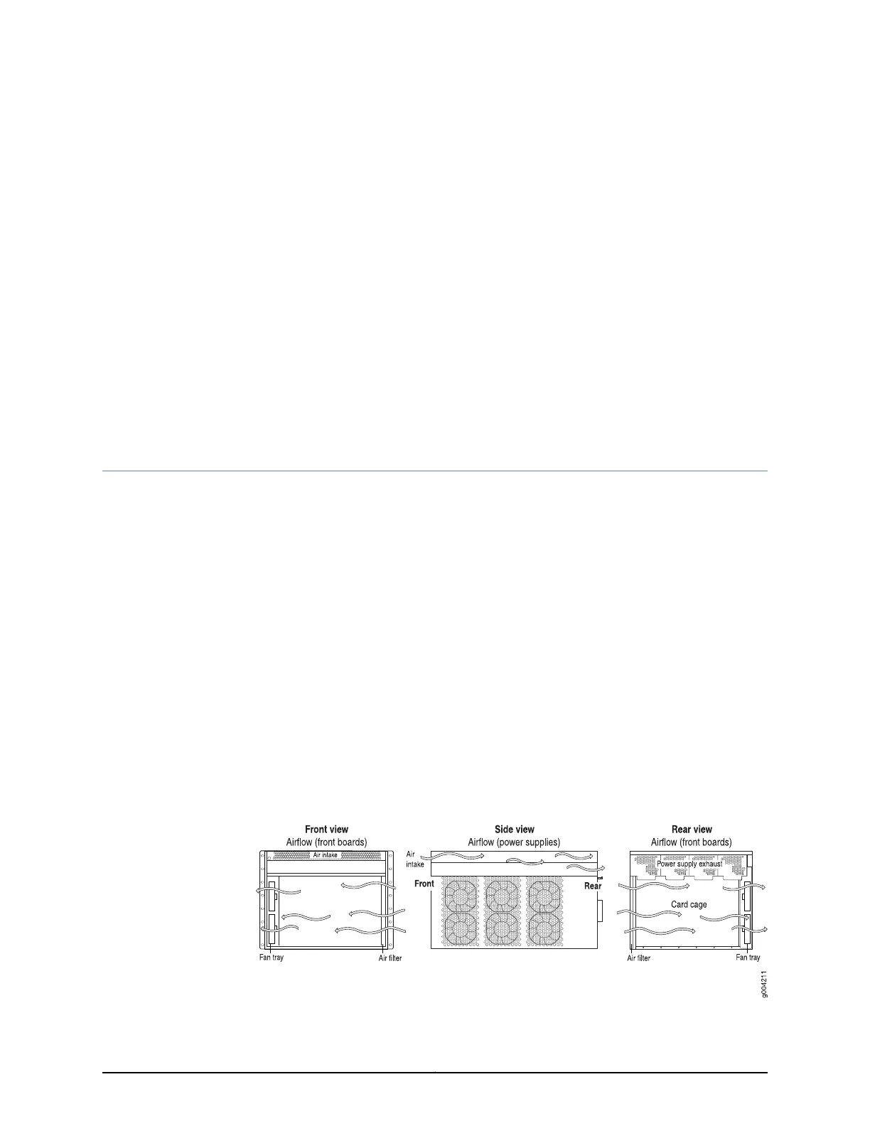 Figure 10 on page 22). The router has one fan tray and one air filter that install vertically