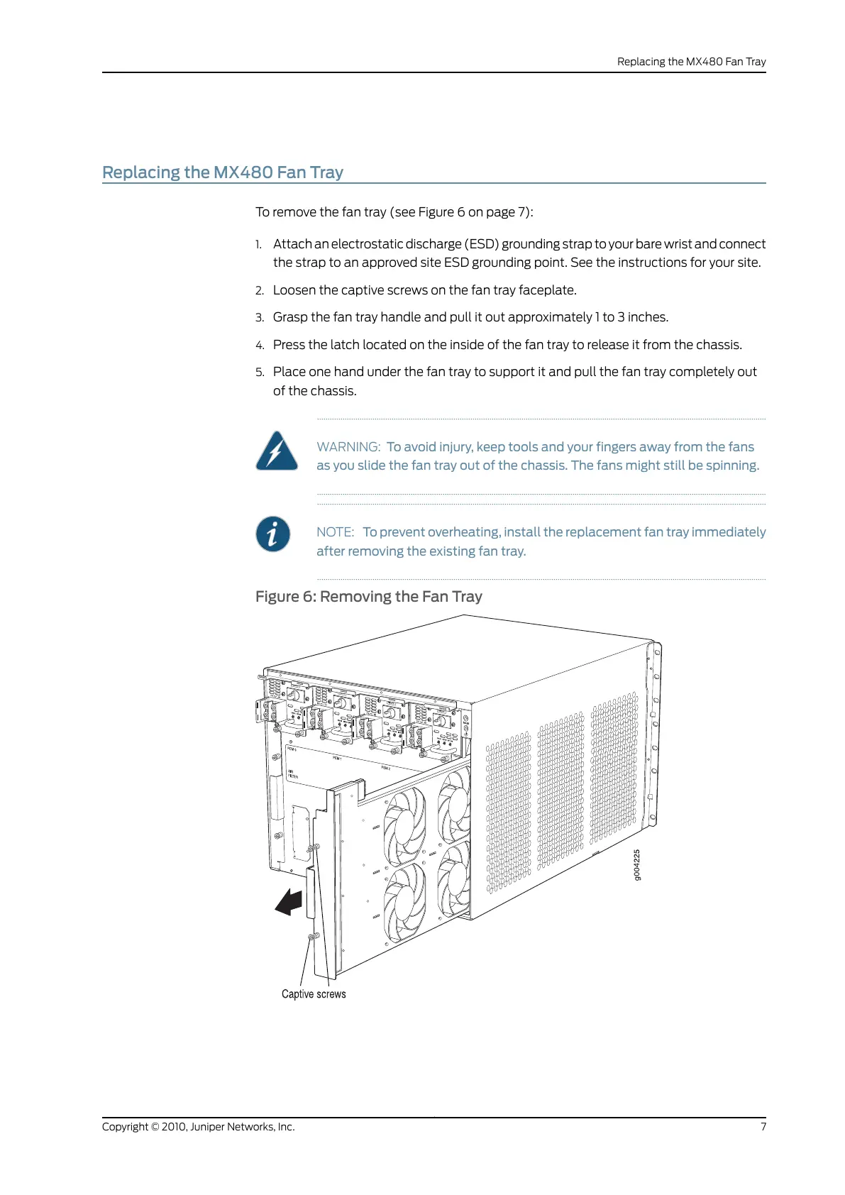 NOTE: To prevent overheating, install the replacement fan tray immediately