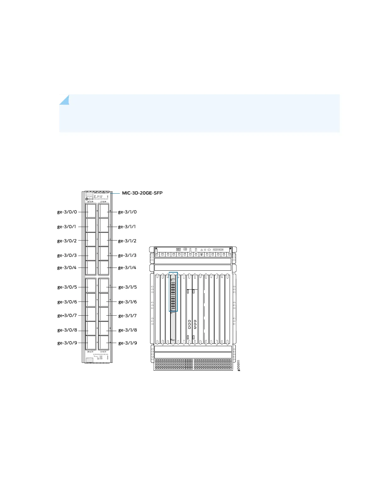 Figure 28 on page 111 shows an example of a 20-port Gigabit Ethernet MIC with SFP installed in MIC slot