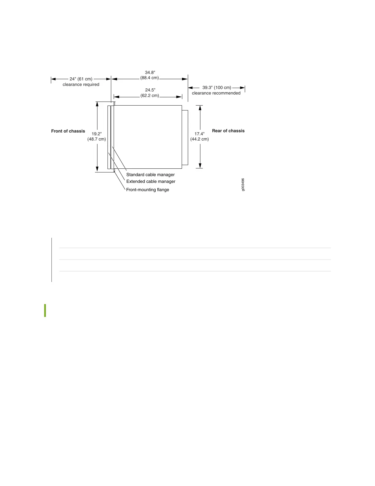 Figure 47: Chassis Dimensions and Clearance Requirements for the MX960 Router with the Standard