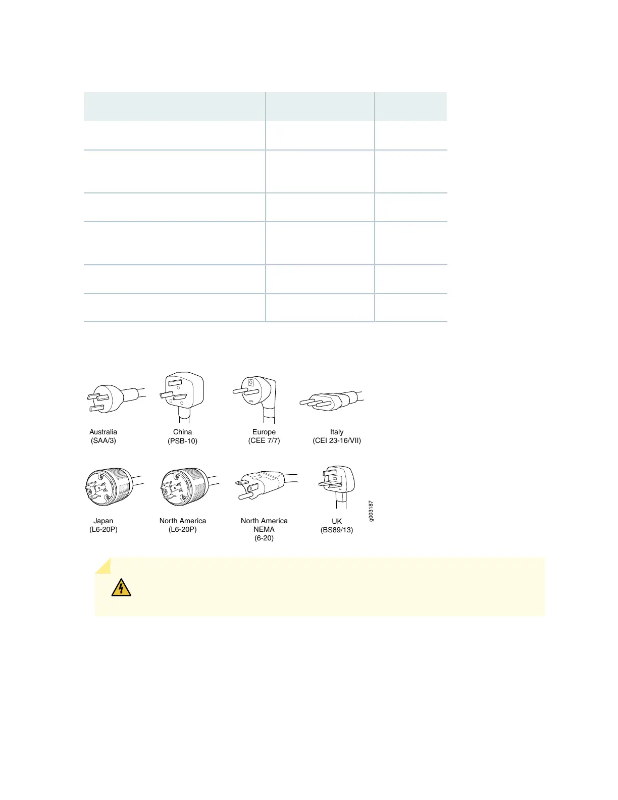 Table 96: AC Power Cord Specifications (continued)