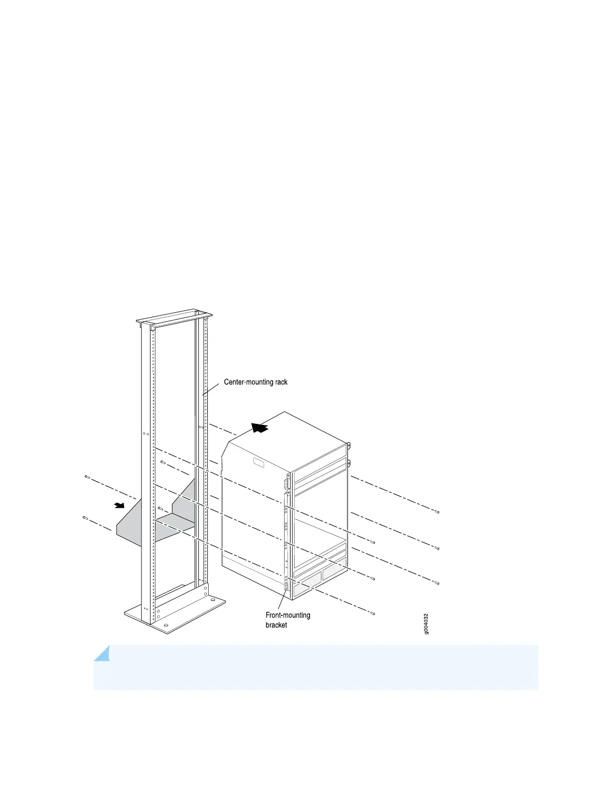 NOTE: This illustration depicts the router being installed in an open-frame rack.