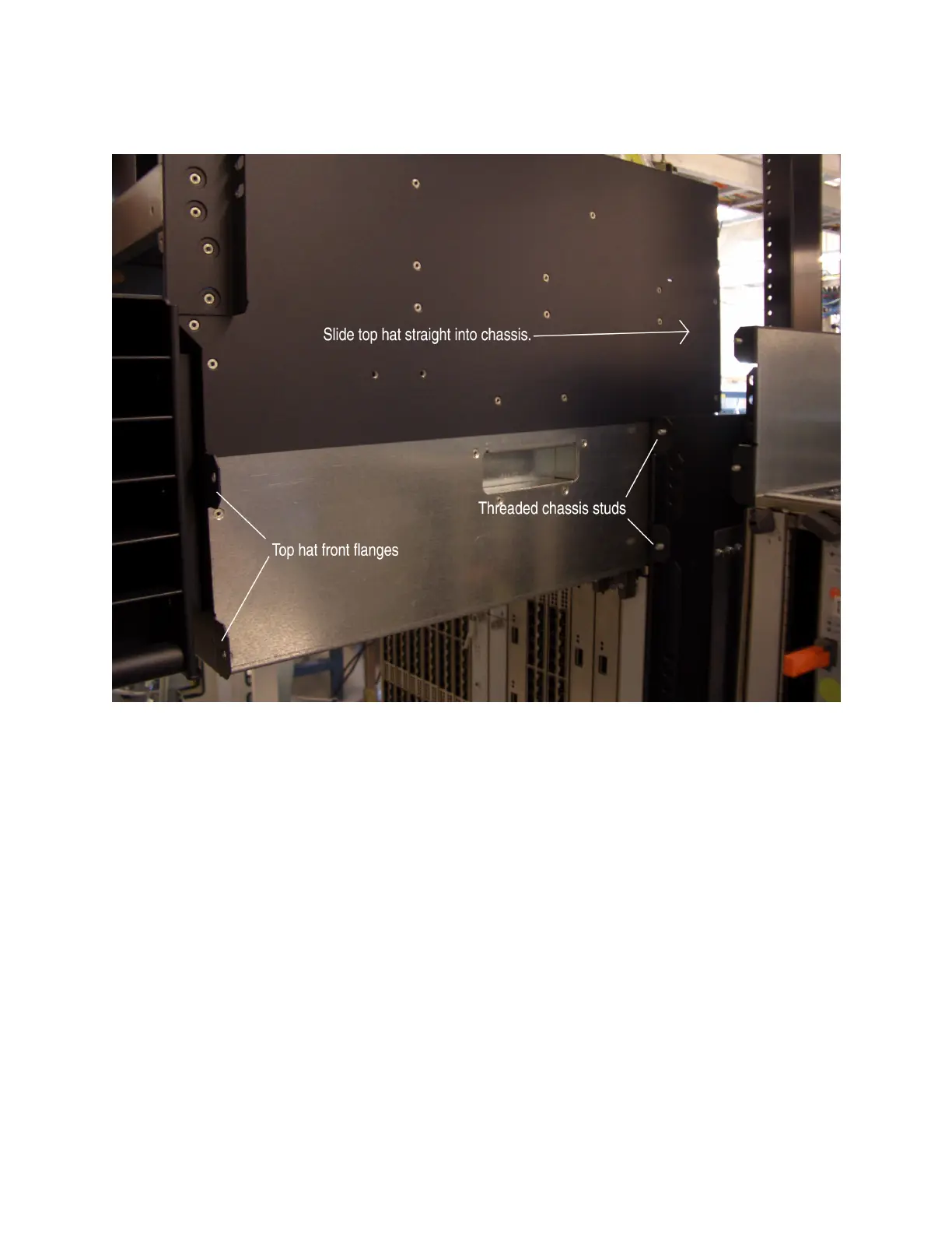 3. Slowly slide the top hat straight into the chassis until the front flanges are approximately 3/8-in. away