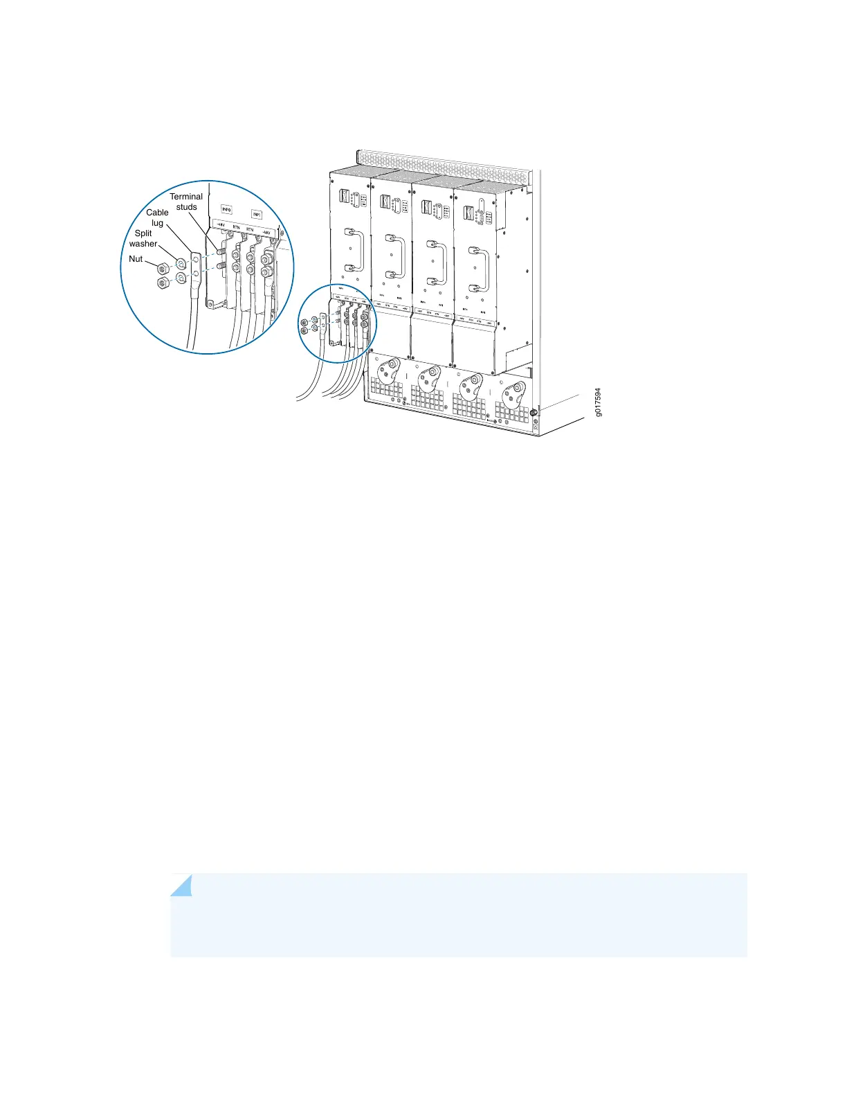 6. Tighten the cable restraint captive screw to hold the power cables in place.