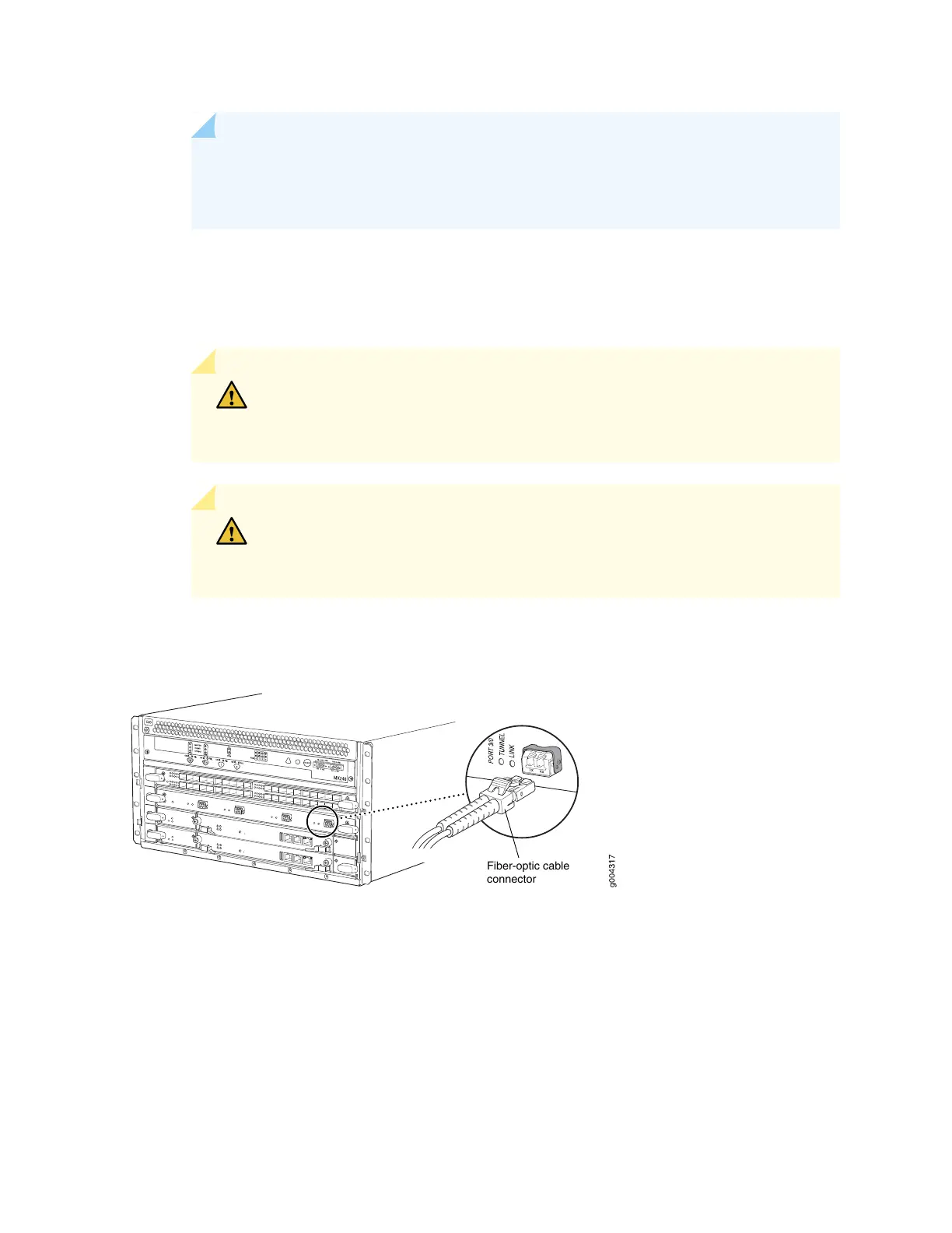 CAUTION: Do not let fiber-optic cables hang free from the connector. Do not