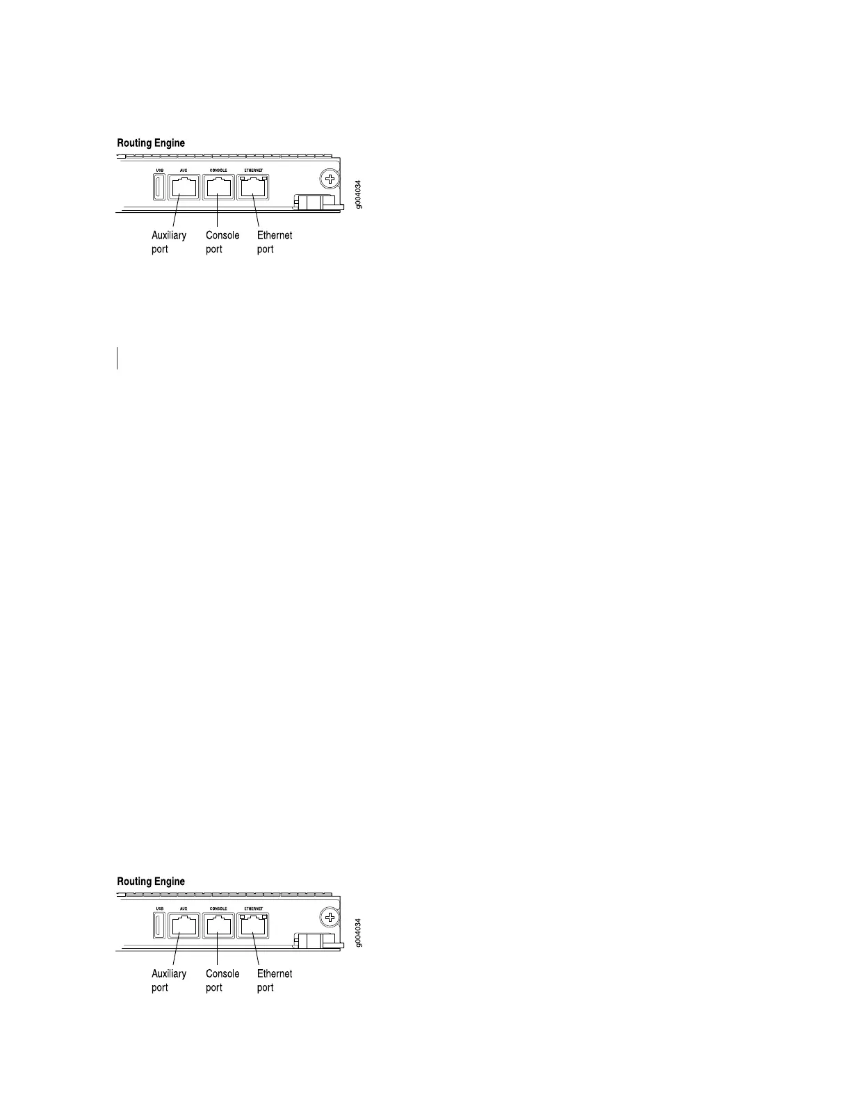 on the Routing Engine. To use a laptop, modem, or other auxiliary device, connect it to the AUX port on